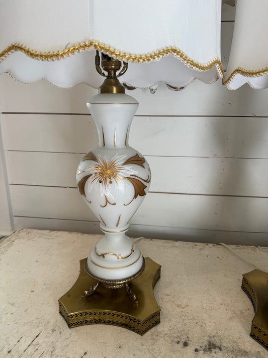 Hollywood Regency Style Urn Table Lamps - has small stains on lampshades
