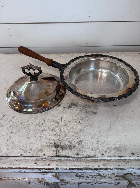 Silver Plate Warmer with lid and wood Handle FB Rogers Co