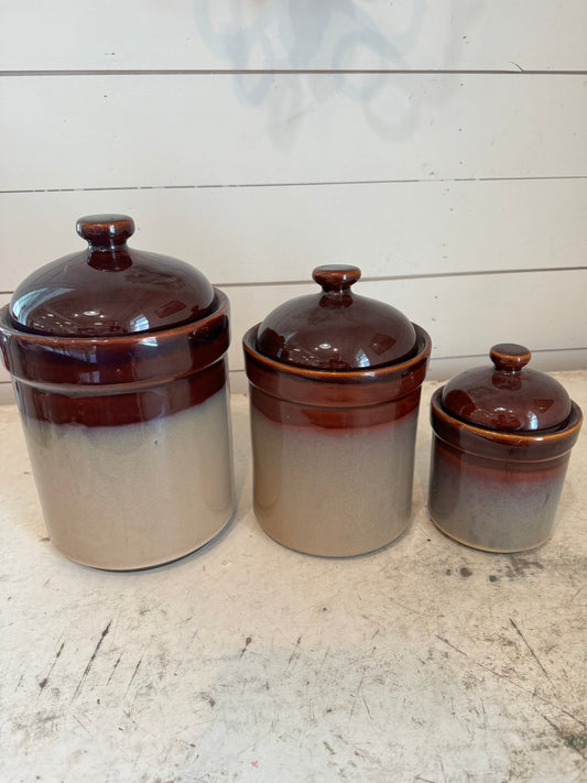 Vintage Sango Nova Brown Stoneware Canisters - Set of 3