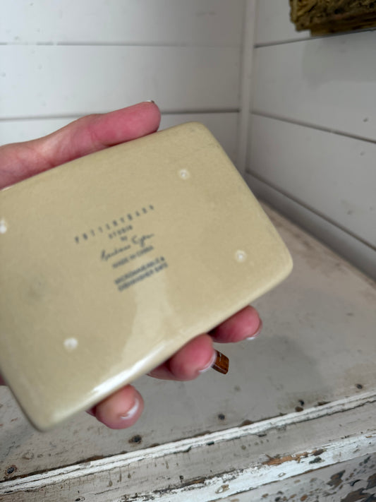 POTTERY BARN - BARBARA EIGEN - CERAMIC SALT AND PEPPER CELLARS W/SPOON AND TRAY