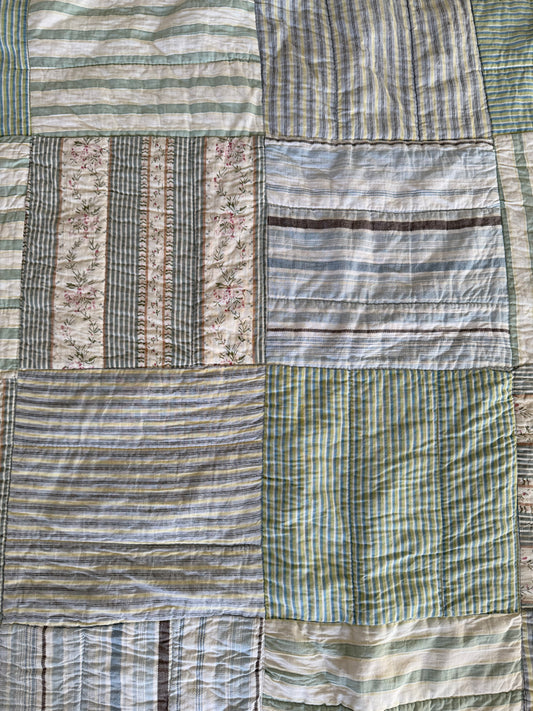 Blue & Green Square Style Quilt with Pillow shams - queen Size