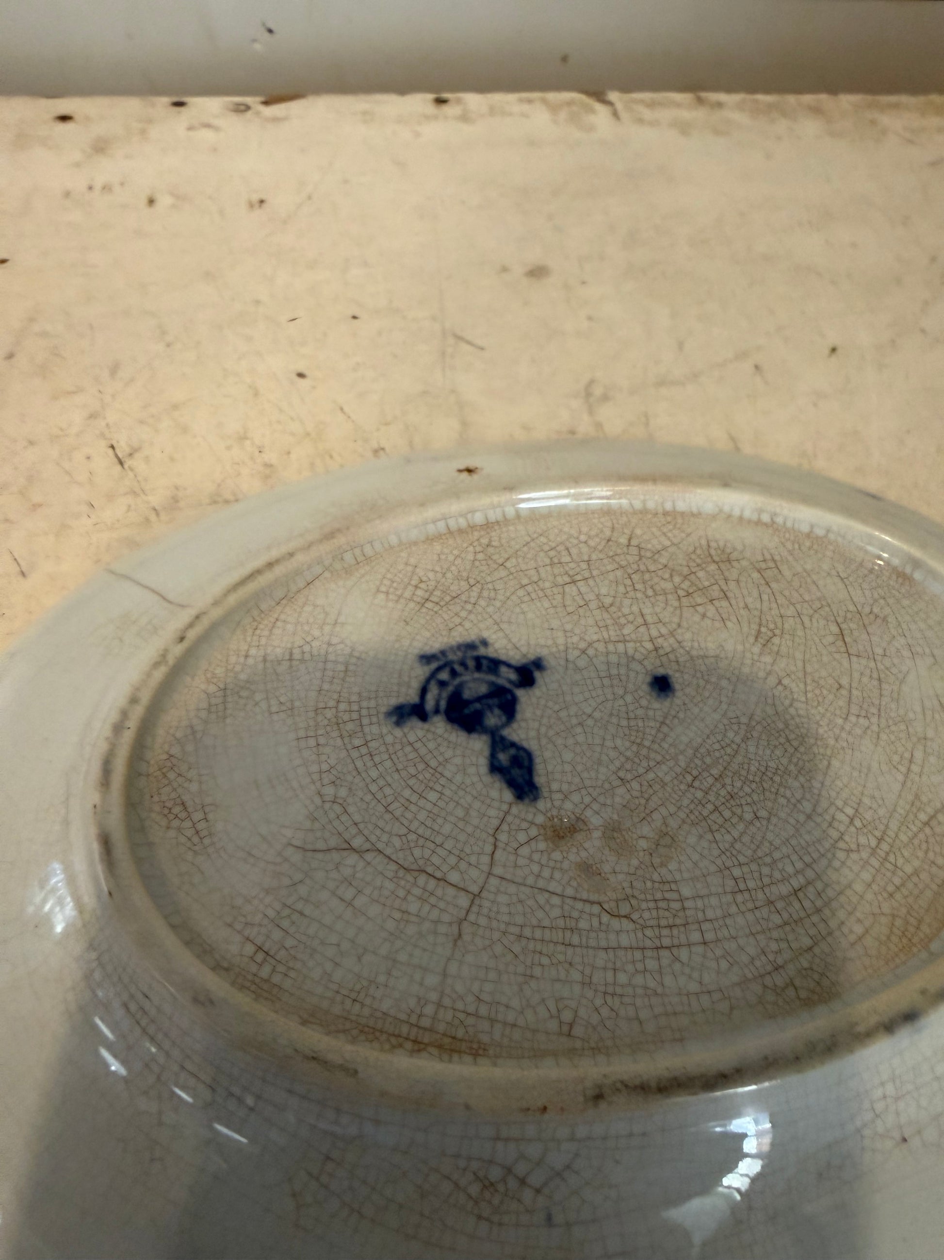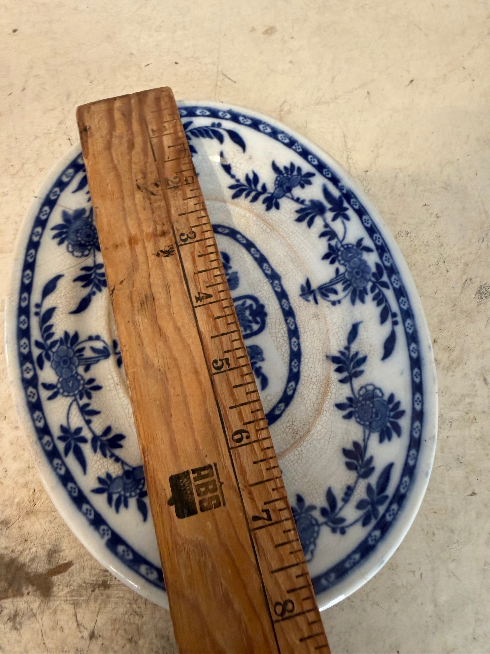 1800’s English Minton Flow Blue and White Porcelain Platter Small 8”