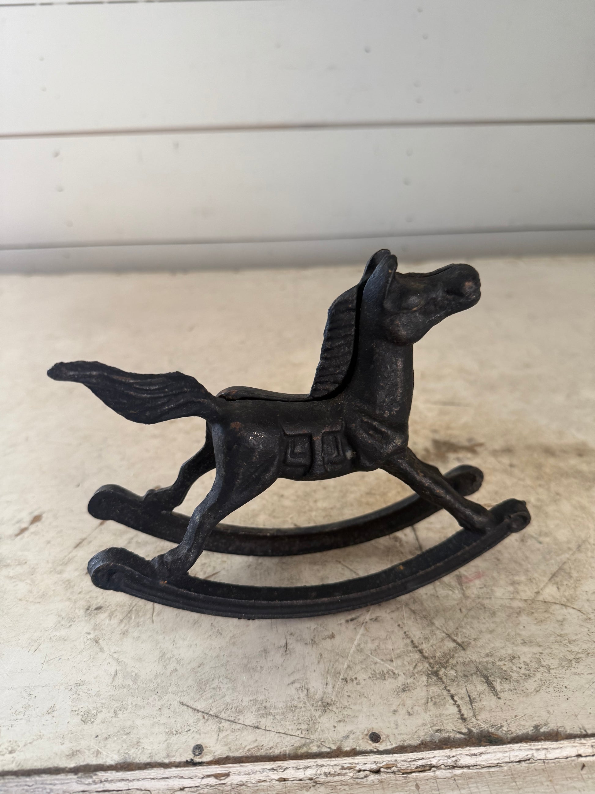 ANTIQUE CAST IRON ROCKING HORSE TOY