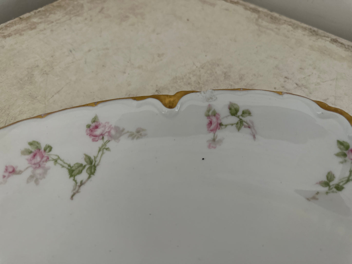 Antique Haviland Limoges Serving Bowl Gold Gild Pink Roses Wheat Sheaf c. 1884-1931 - Has chip as shown