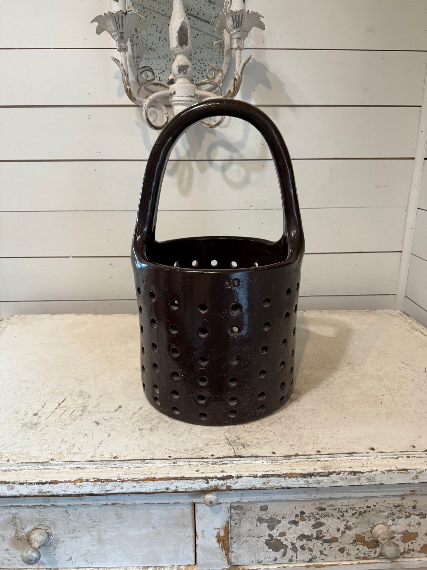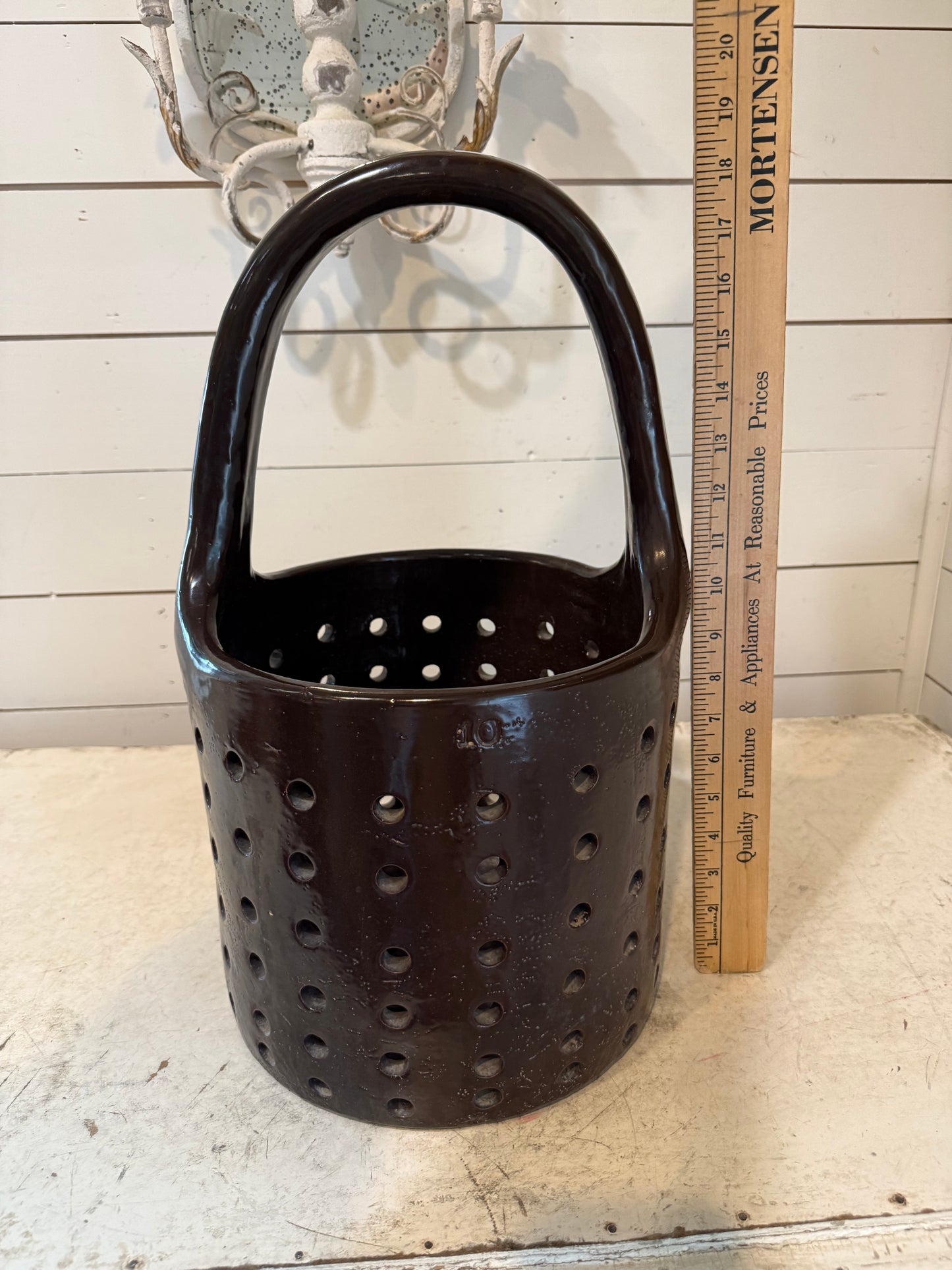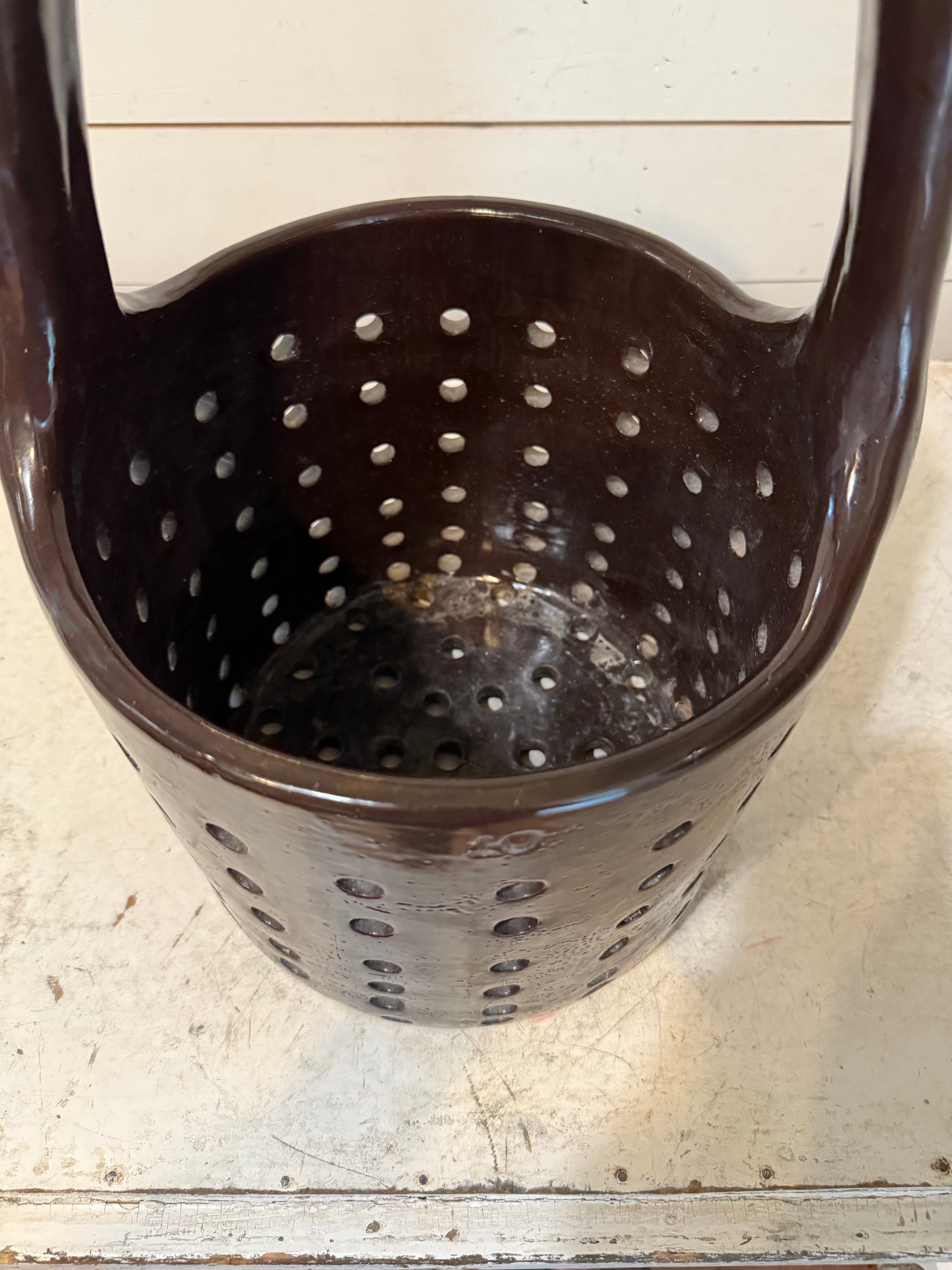 #10 Antique Salt Glazed Industrial Stoneware cheese strainer Dipping Baskets, Early 1900s
