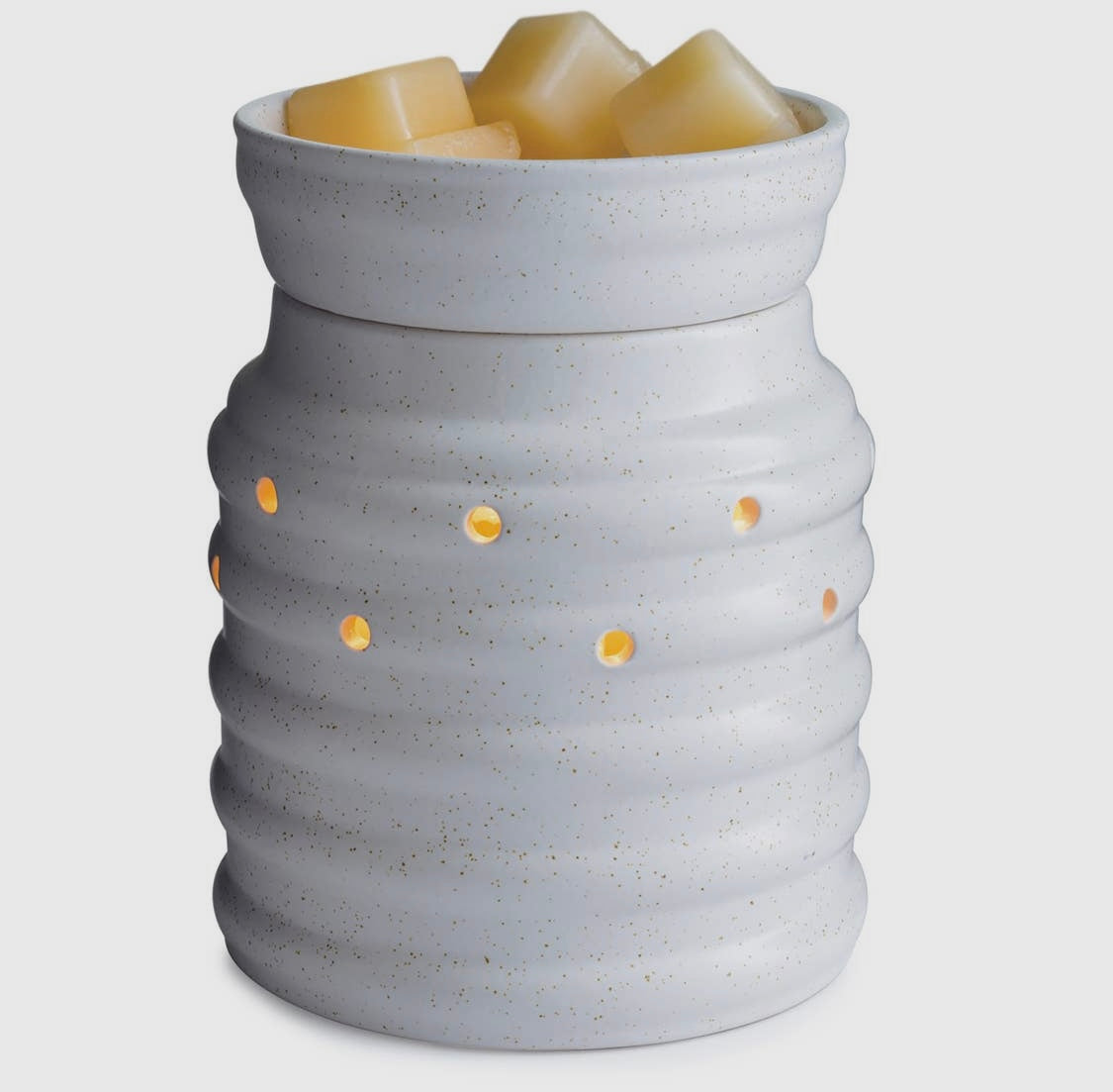 Illumination fragrance warmers bring a stylized touch and a warm glow while releasing fragrance from scented wax melts.