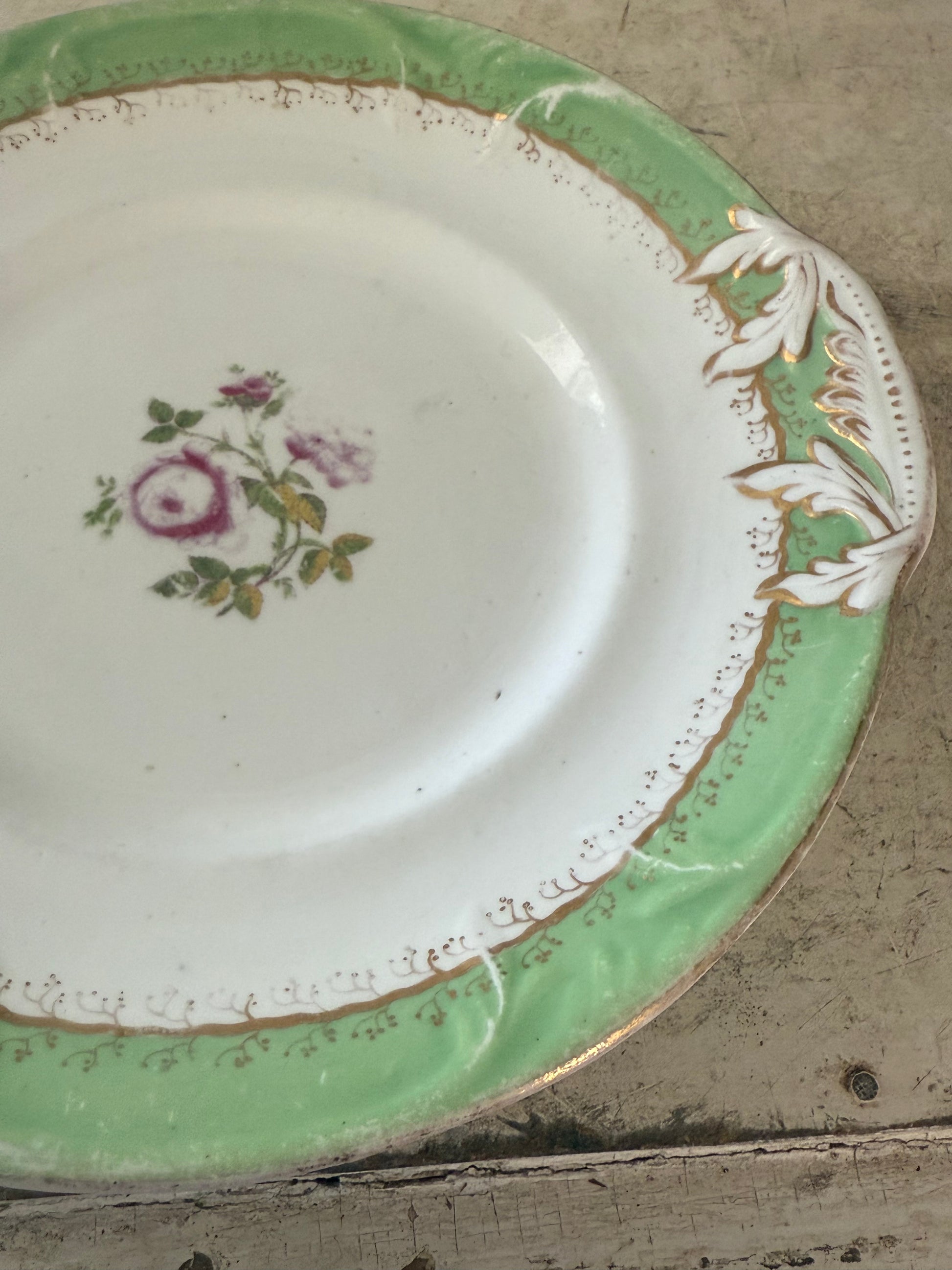 Derby Platter, apple green with c-scroll moulding & flowers