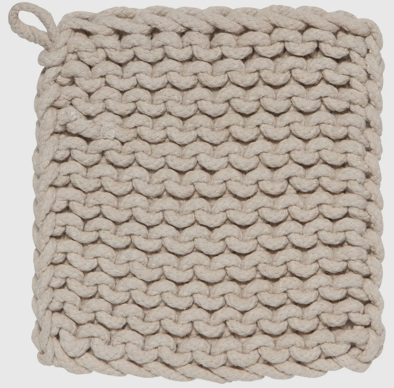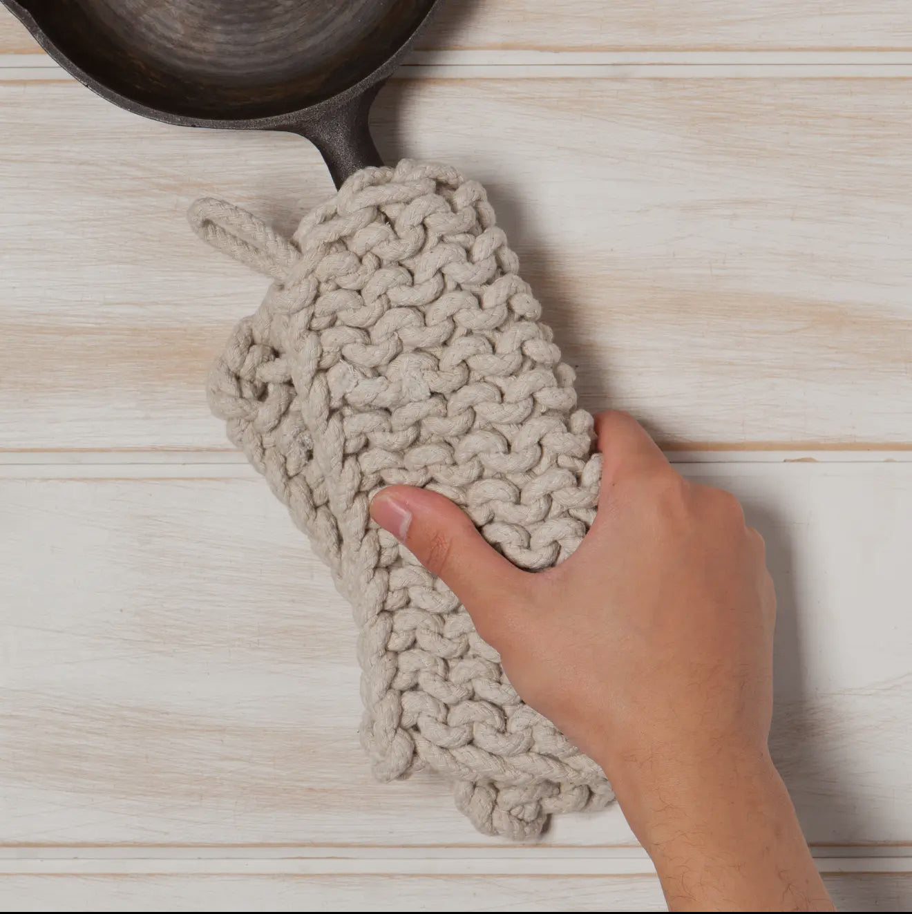 This textured potholder is made by hand in an array of appealing yarn colors. It does double duty as a trivet and adds tactile interest by the oven or on the table. Part of the Medley collection of color-coordinated kitchen and table linens from Danica Heirloom.