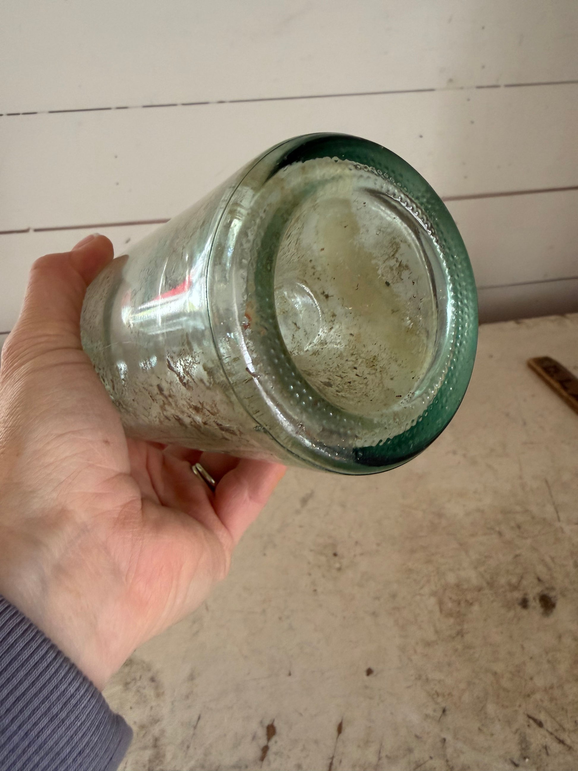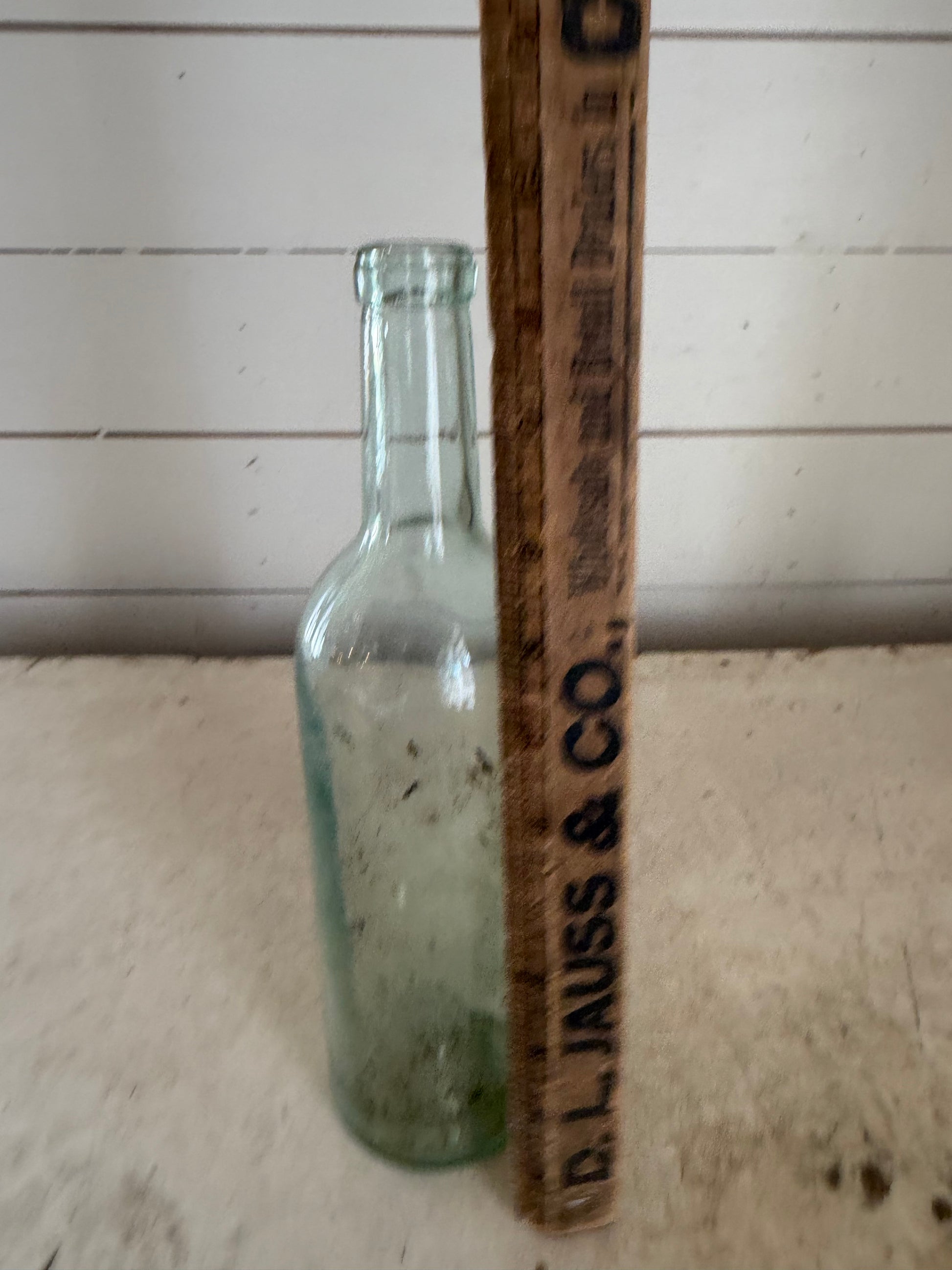 Early 20th Century Hand Blown Light Green Glass Bottle with dimpled bottom