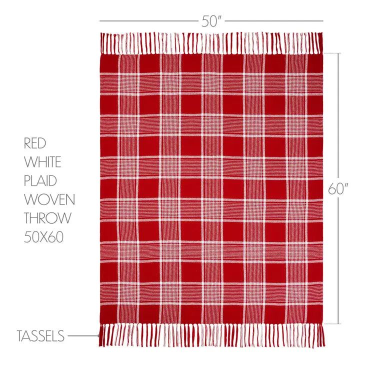 Transform your home into a cozy winter lodge with timeless plaid. The Eston Red White Plaid Woven Throw measures 50x60 inches. The classic rustic country throw blanket features classic red and crisp white plaid. Tasseled edging adds an extra pop of texture. Coordinates with the Eston Red White Collection by VHC for modern farmhouse decor for the entire home.