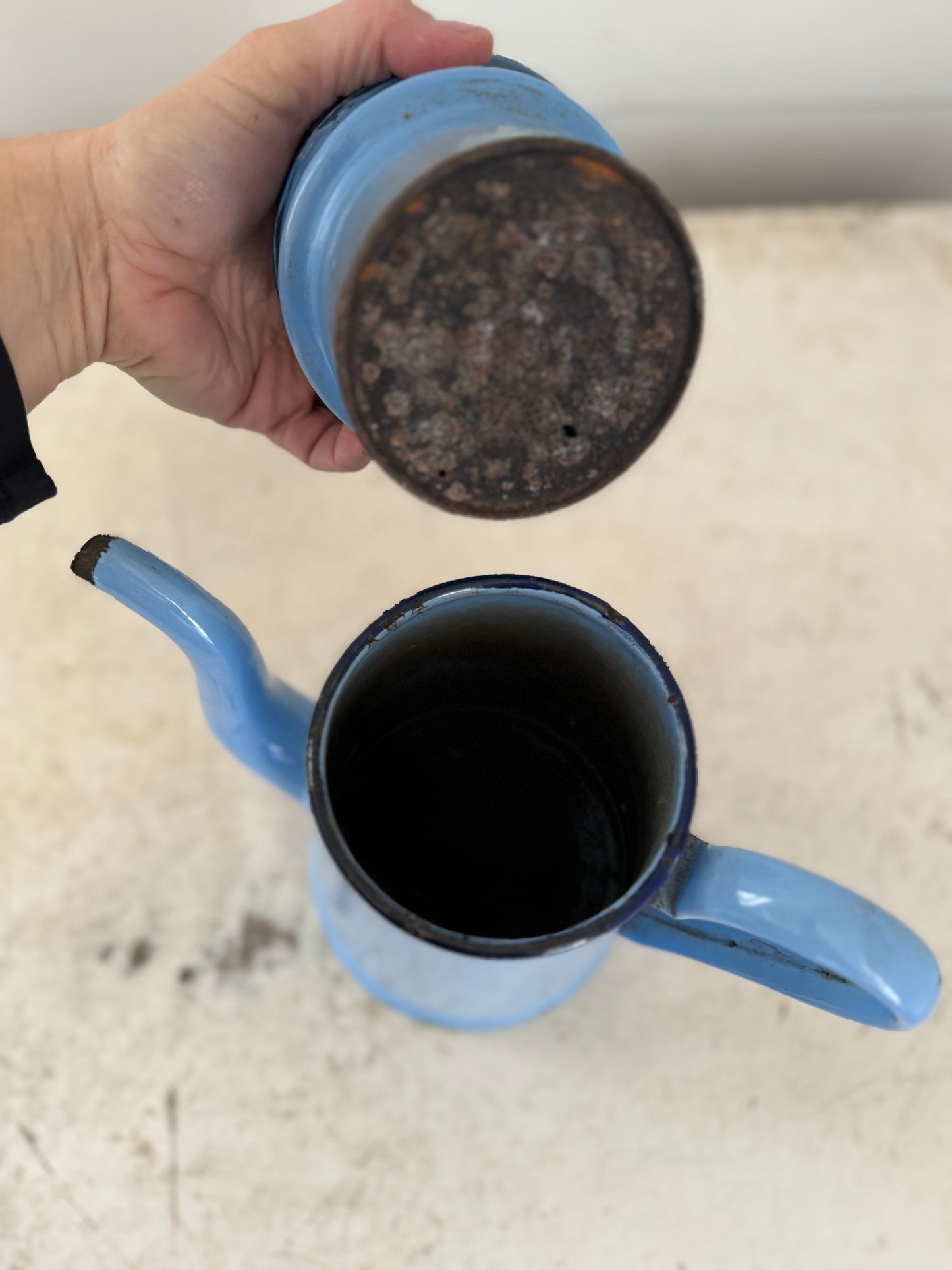 French Enamel Blue Coffee Pot