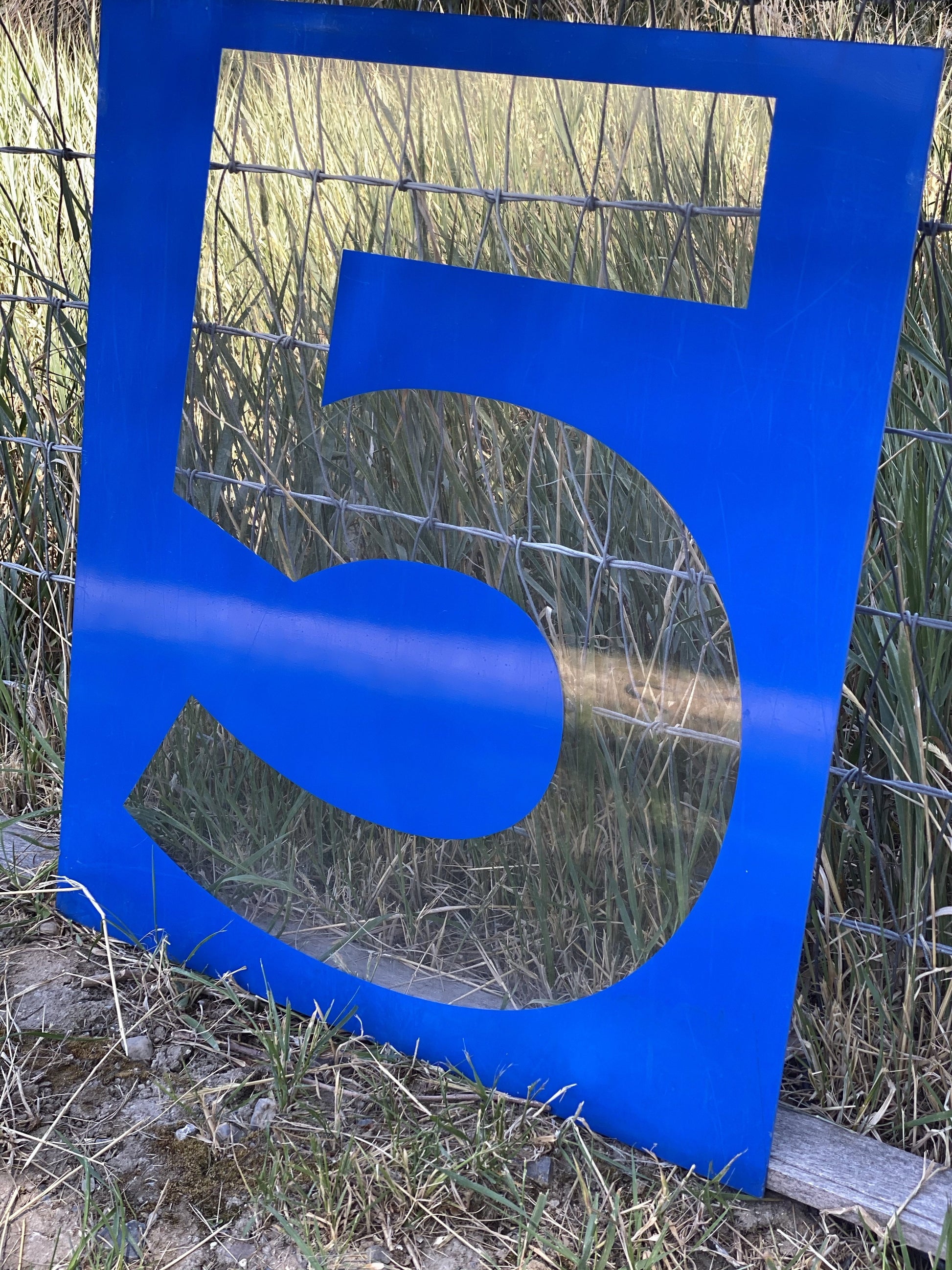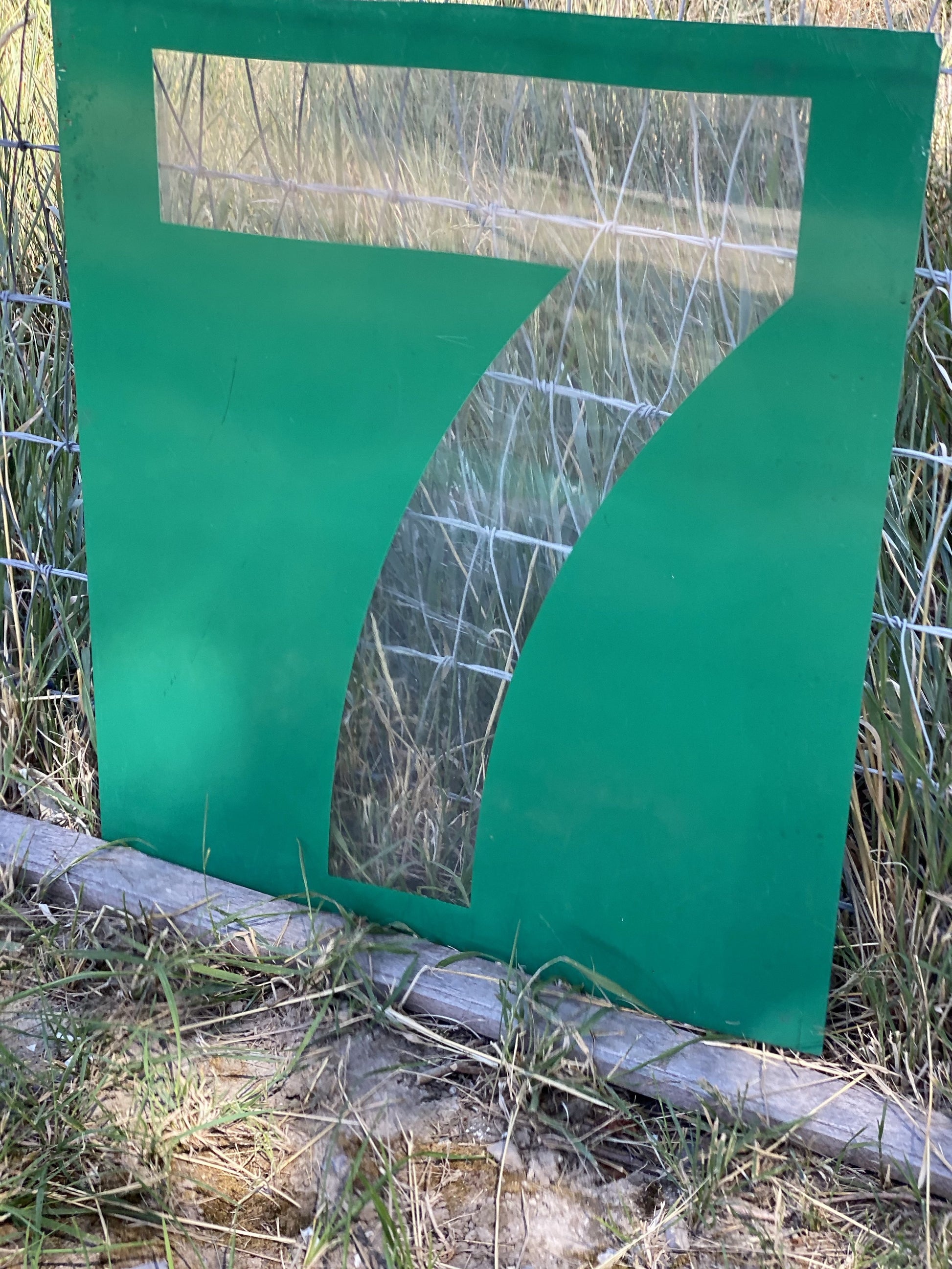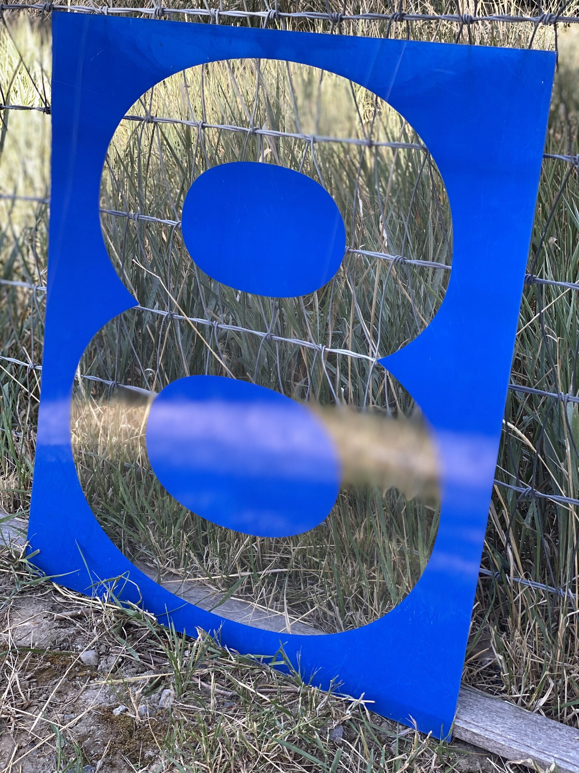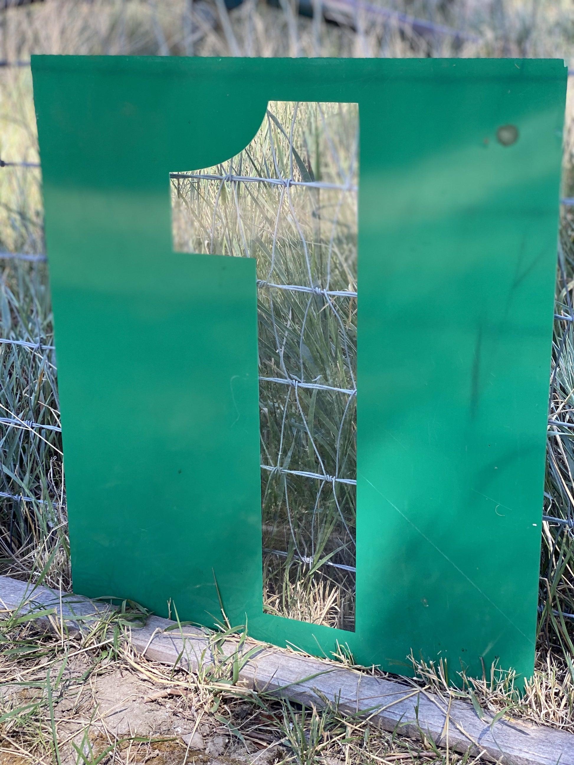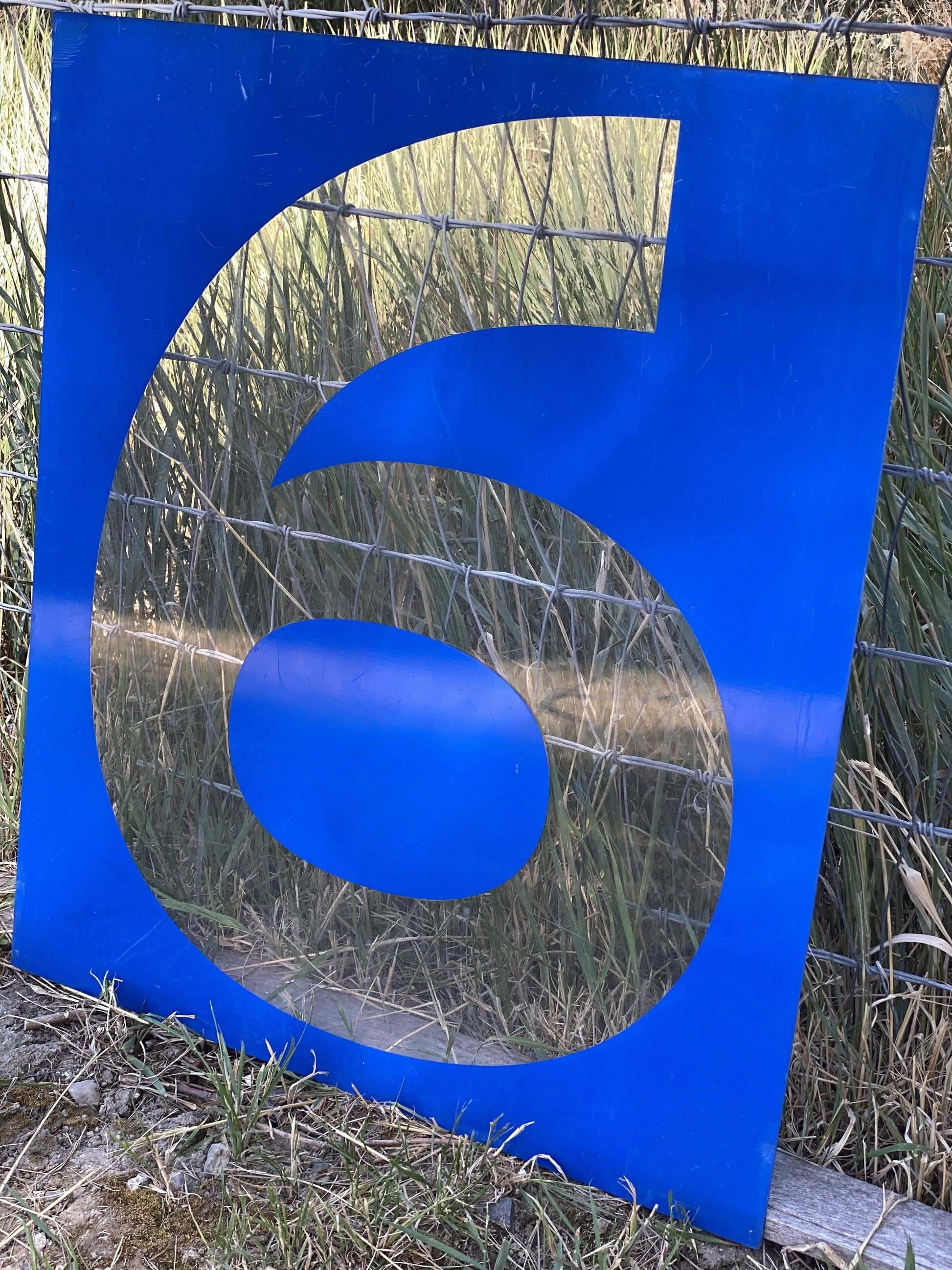 Vintage acrylic gas station numbers in blue and green. Wear consistent with age with some scratches. Measures 21” wide x 24” tall.