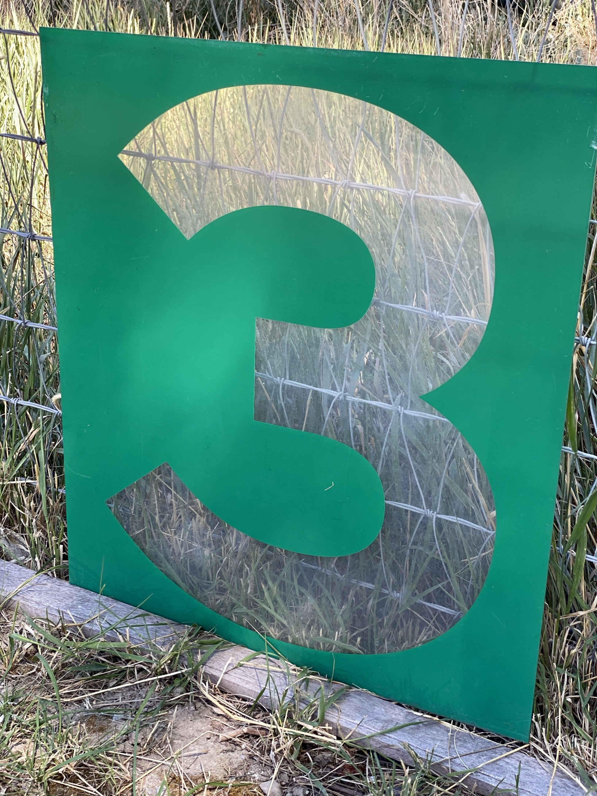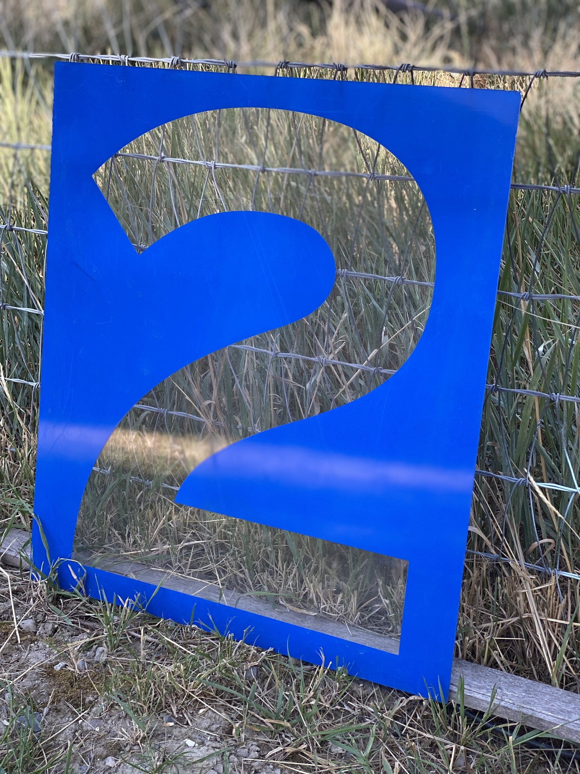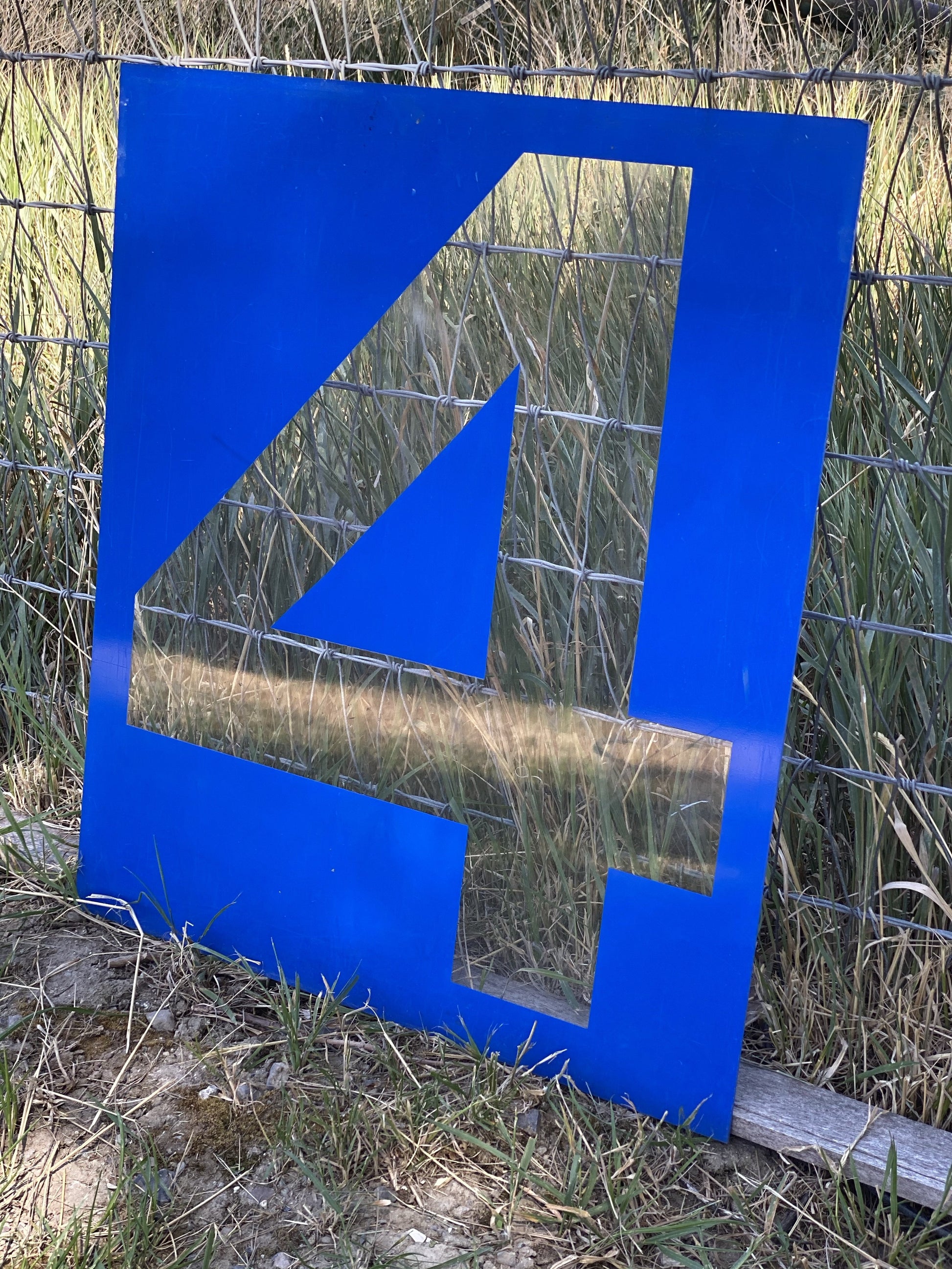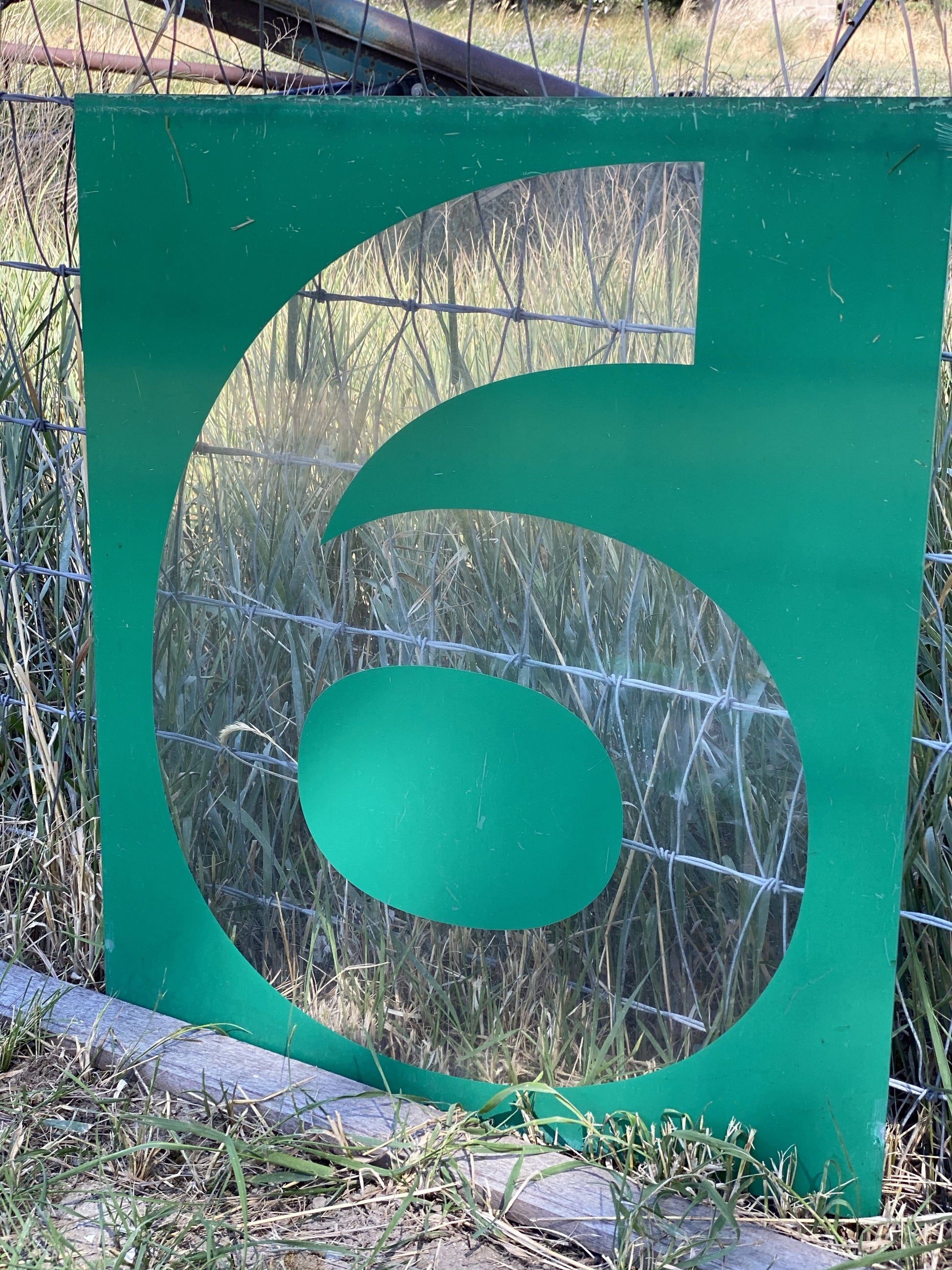 Vintage acrylic gas station numbers in blue and green. Wear consistent with age with some scratches. Measures 21” wide x 24” tall.