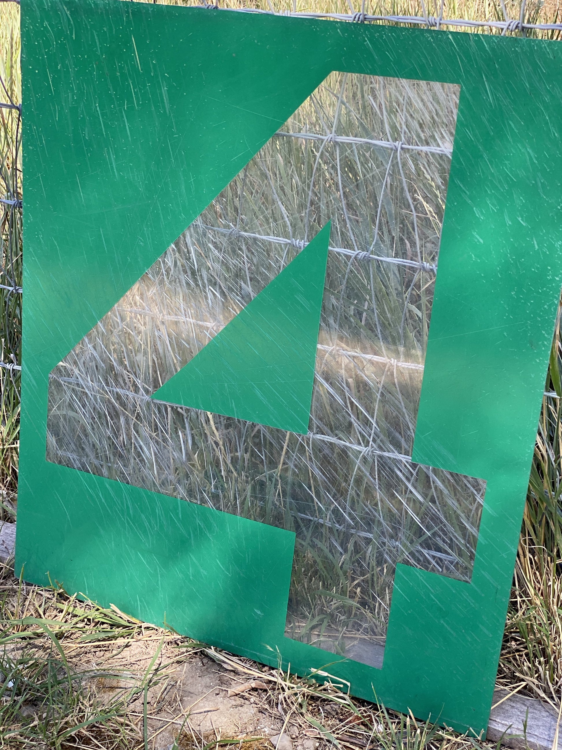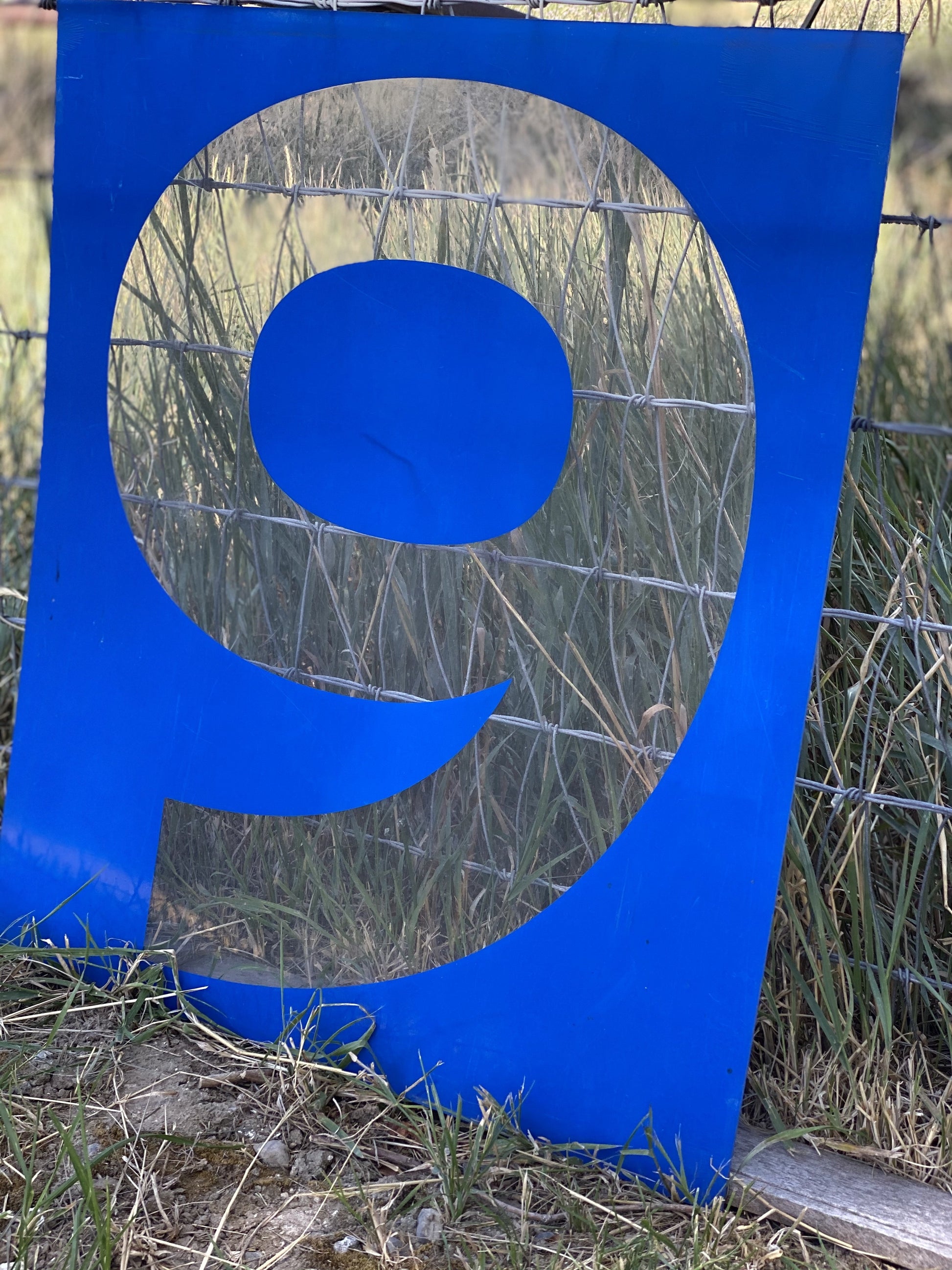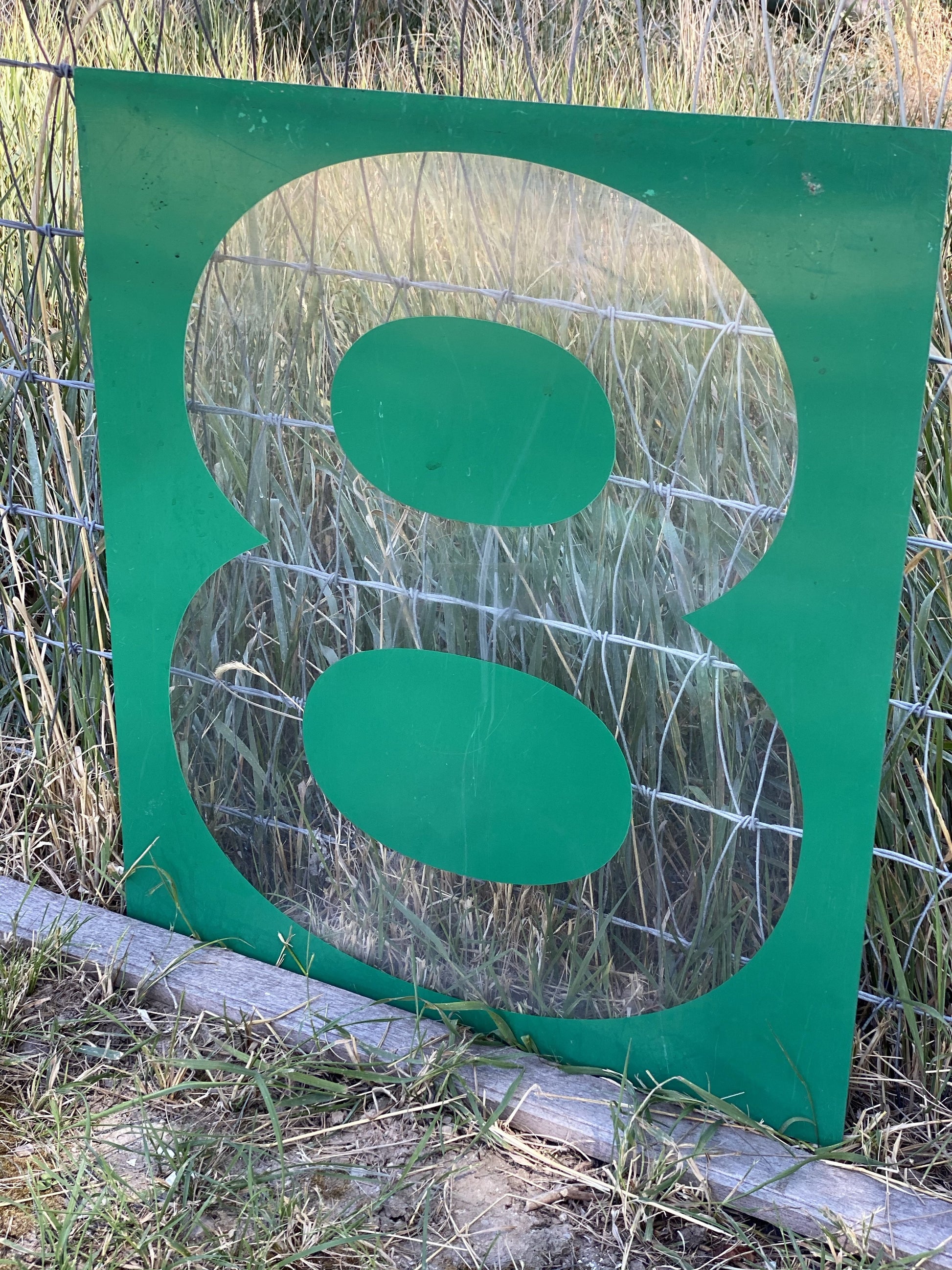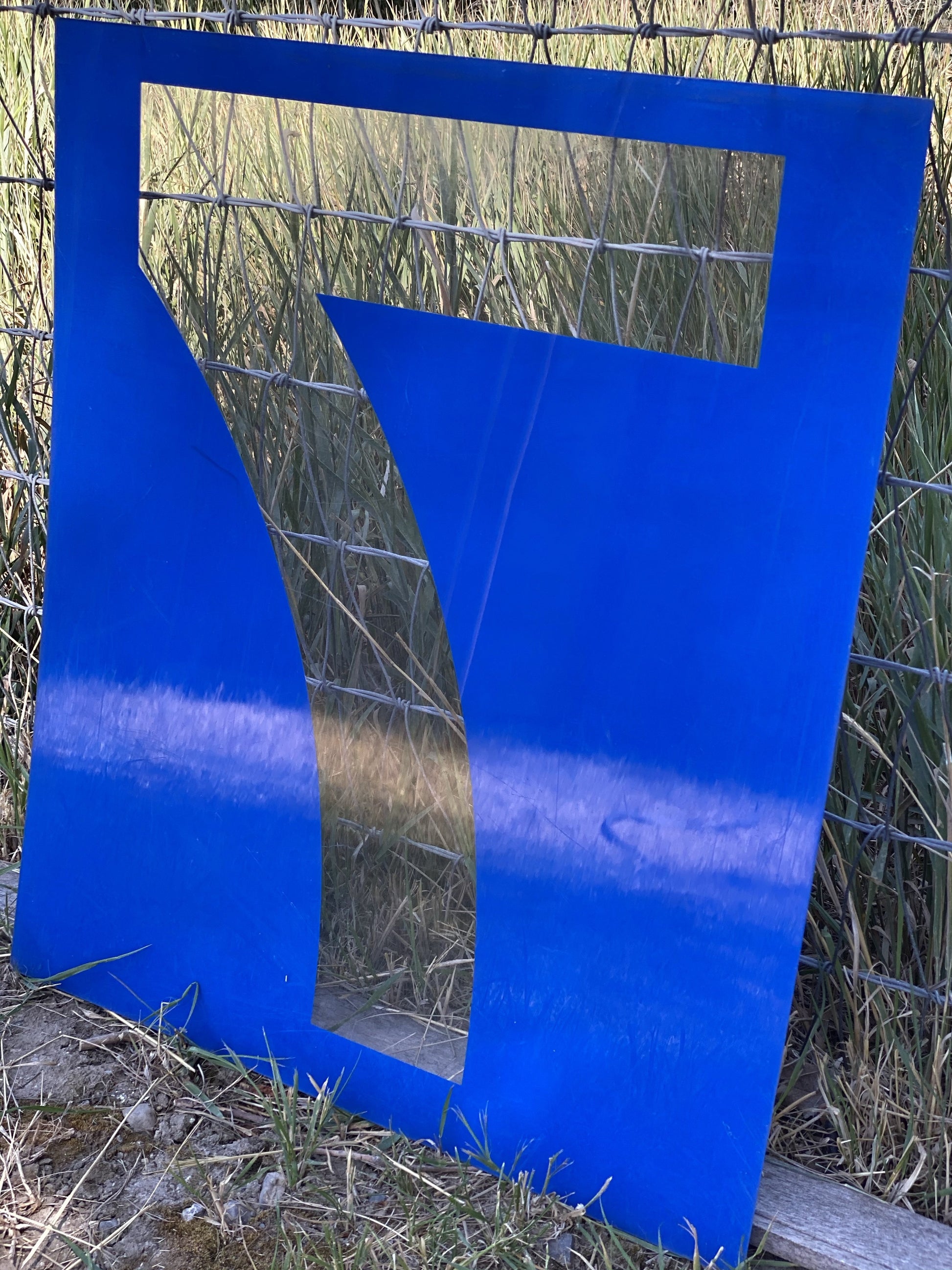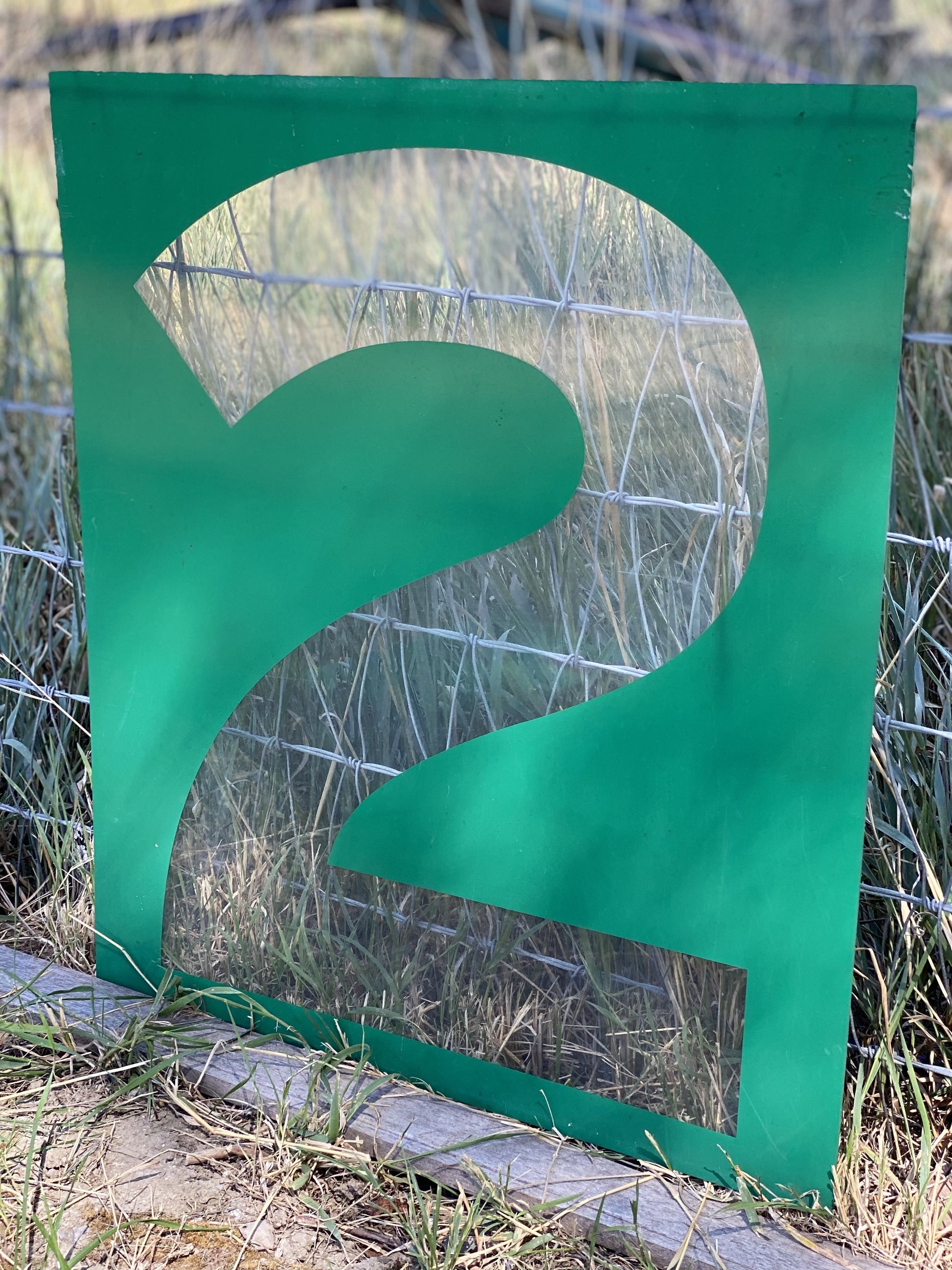Vintage acrylic gas station numbers in blue and green. Wear consistent with age with some scratches. Measures 21” wide x 24” tall.