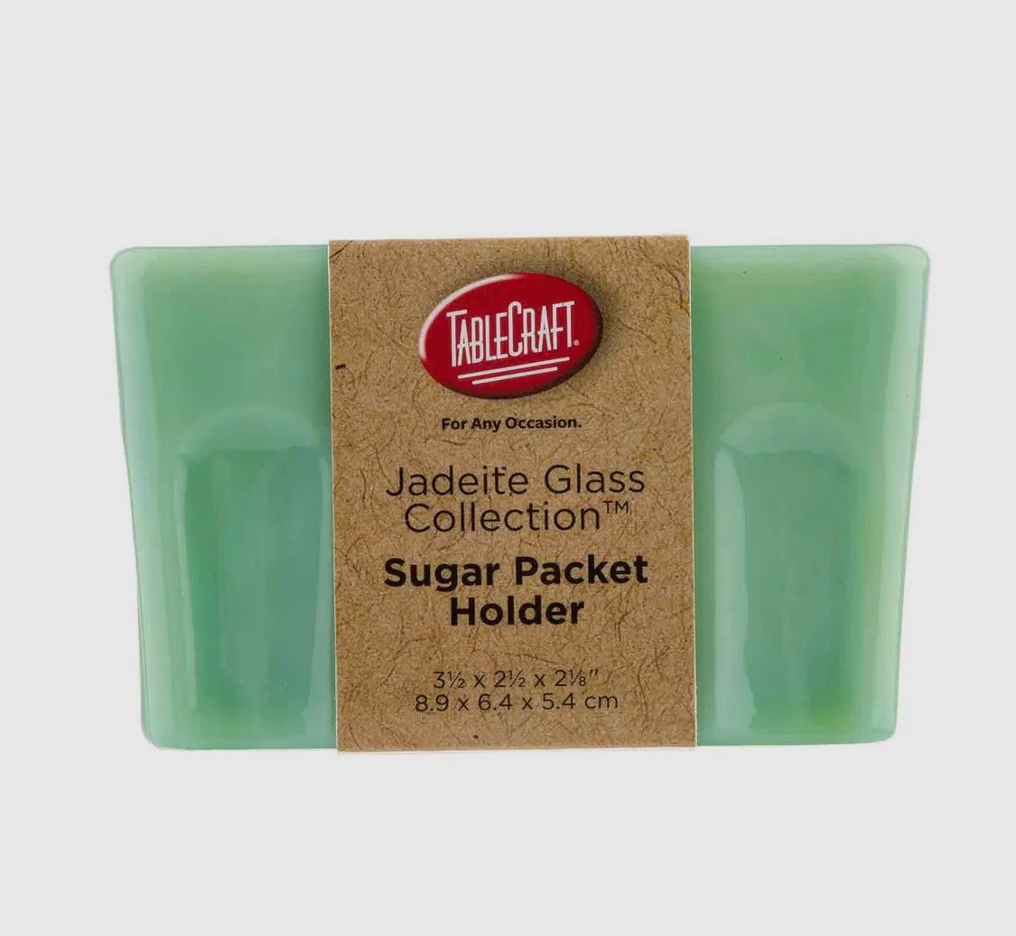 Keep your sugar packets organized and within reach with TableCraft's Jadeite Glass