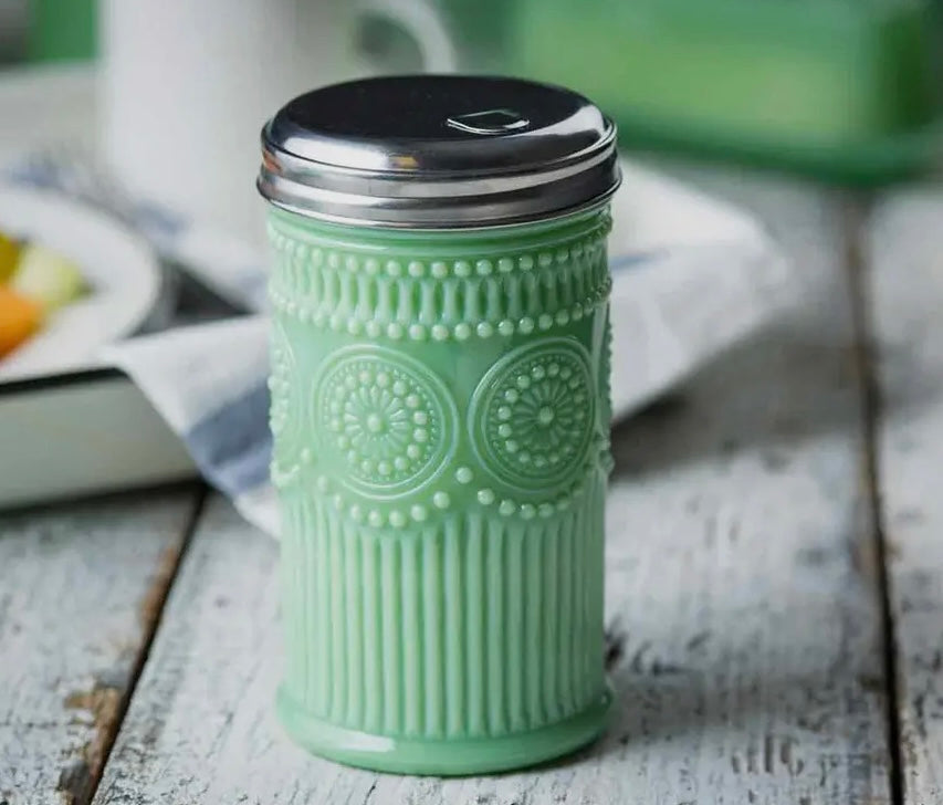 This 9oz Sugar Shaker, with a flap closure in its Stainless Steel top, features classic raised trimming that looks attractive at any coffee service. Give a nod to the nostalgic with TableCraft's range of Jadeite Green Glass. The collection features all the traditional charm of the authentic pieces to add a touch of the past to your pantry, kitchen, or tabletop.