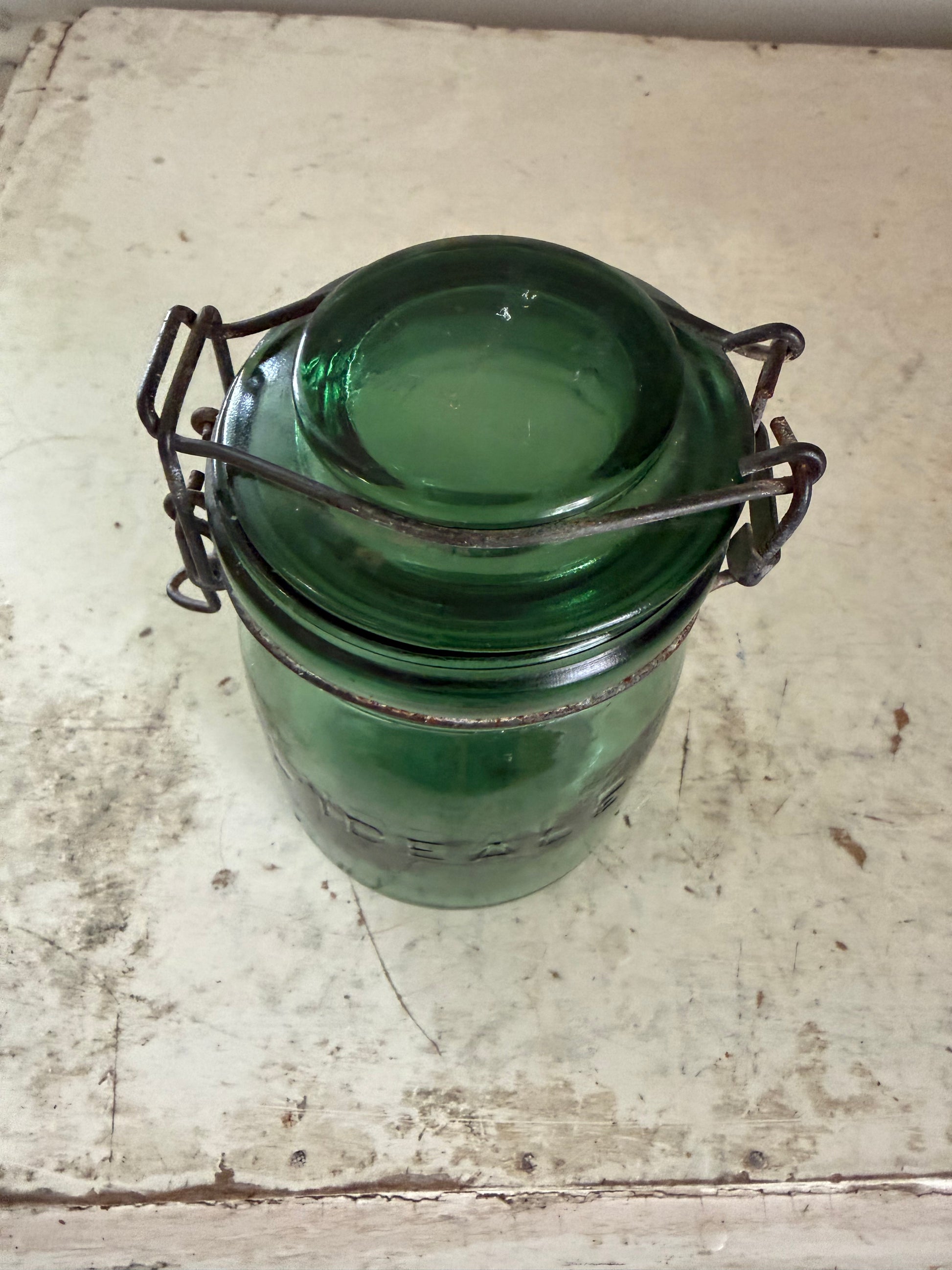L’ideal 3/4 litre Antique Green Glass Hermetic Canning Jar