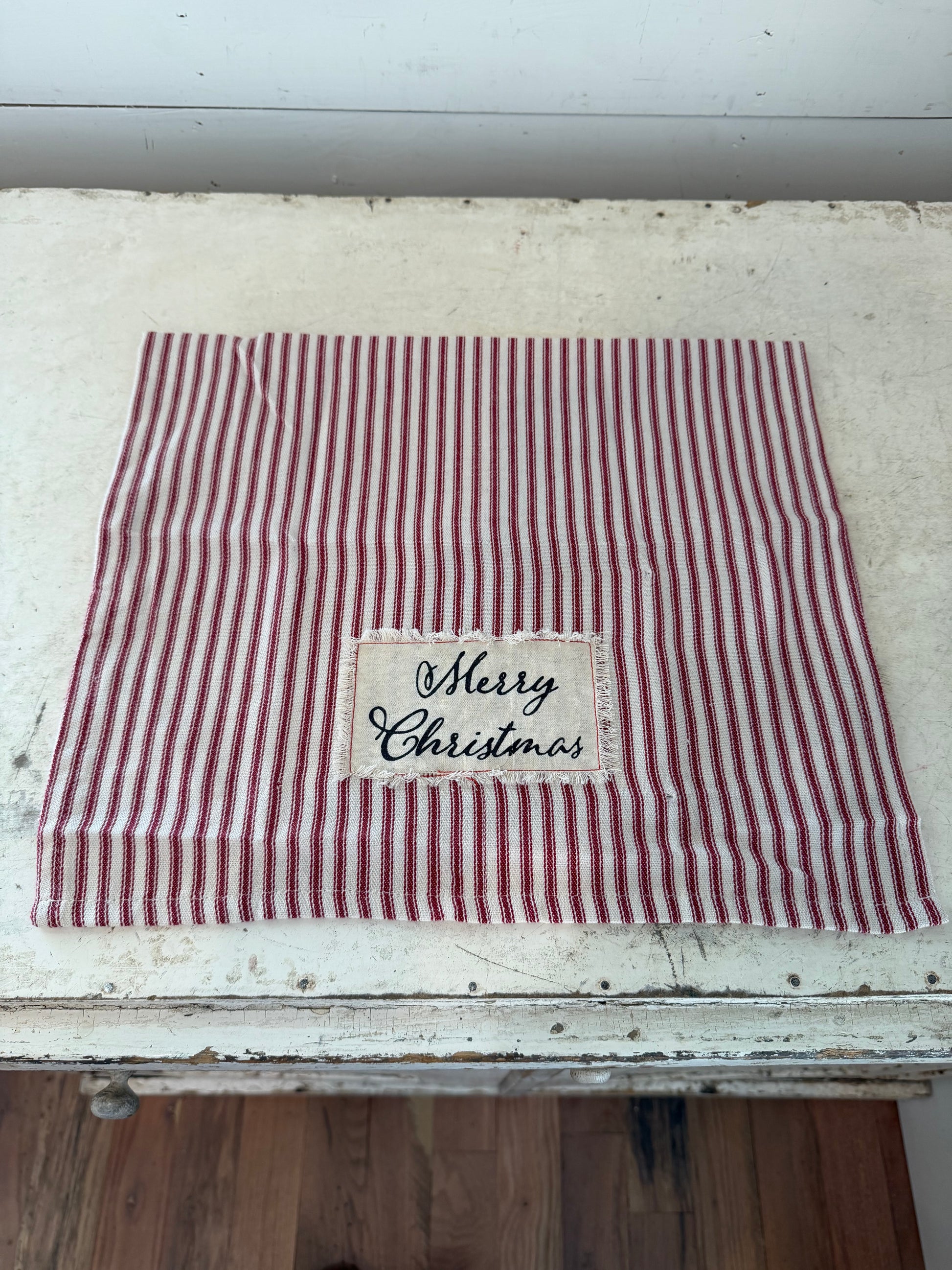 Merry Christmas Red and White Striped Dish Cloth
