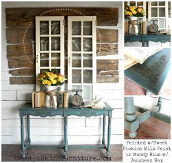 Sweet Pickins Milk Paint is a true milk paint which comes in a powder form. Our Milk Paint is environmentally safe, non-toxic and is food safe. There is a slight milky odor when it is applied, but it is completely odorless when dry. Our milk paint is 100% VOC free and is made with all natural earth materials.