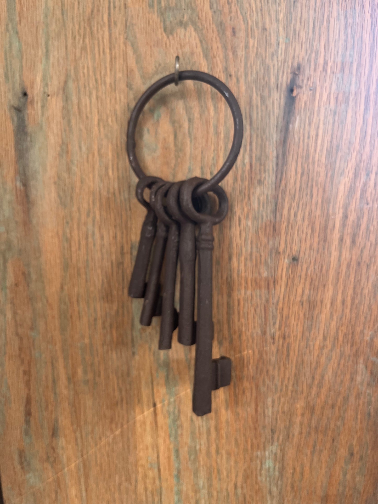 Old fashioned keys, cast iron, antique brown. A key isn’t just functional, but can also be decorative as well. This decorative keyring with five old fashioned cast iron keys have been hand cast according to centuries old tradition and craftsmanship.
