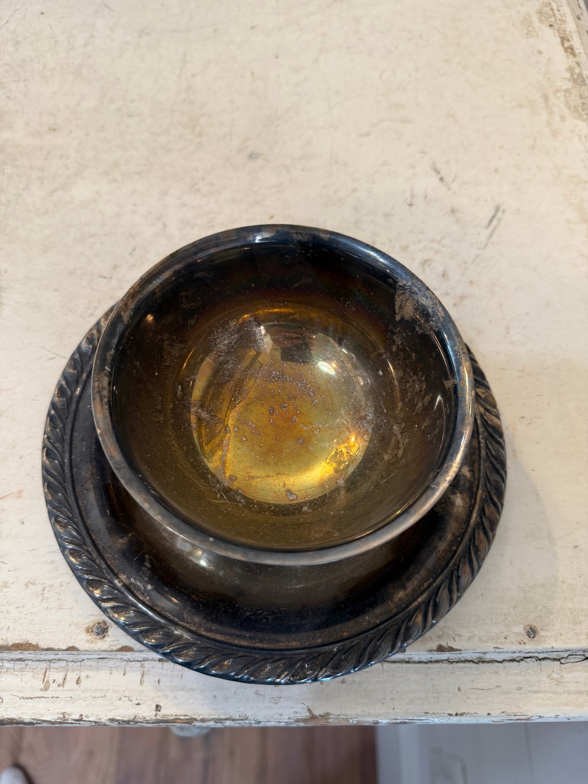 Oneida silver-plated gravy bowl with an attached underplate