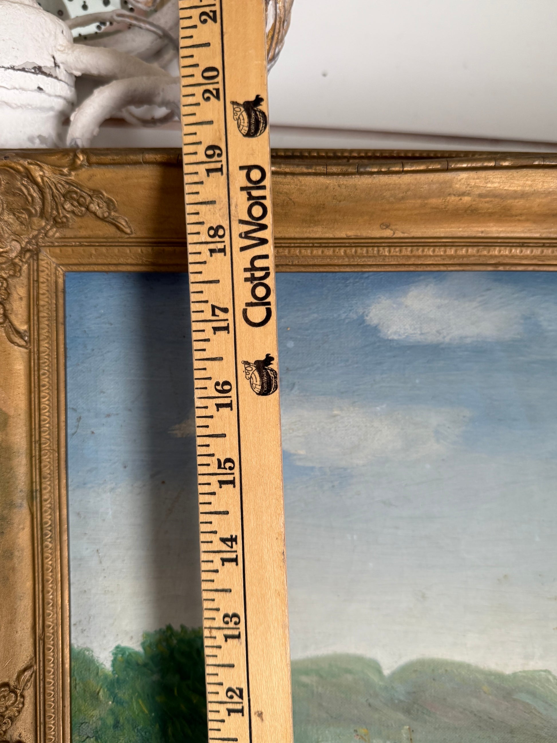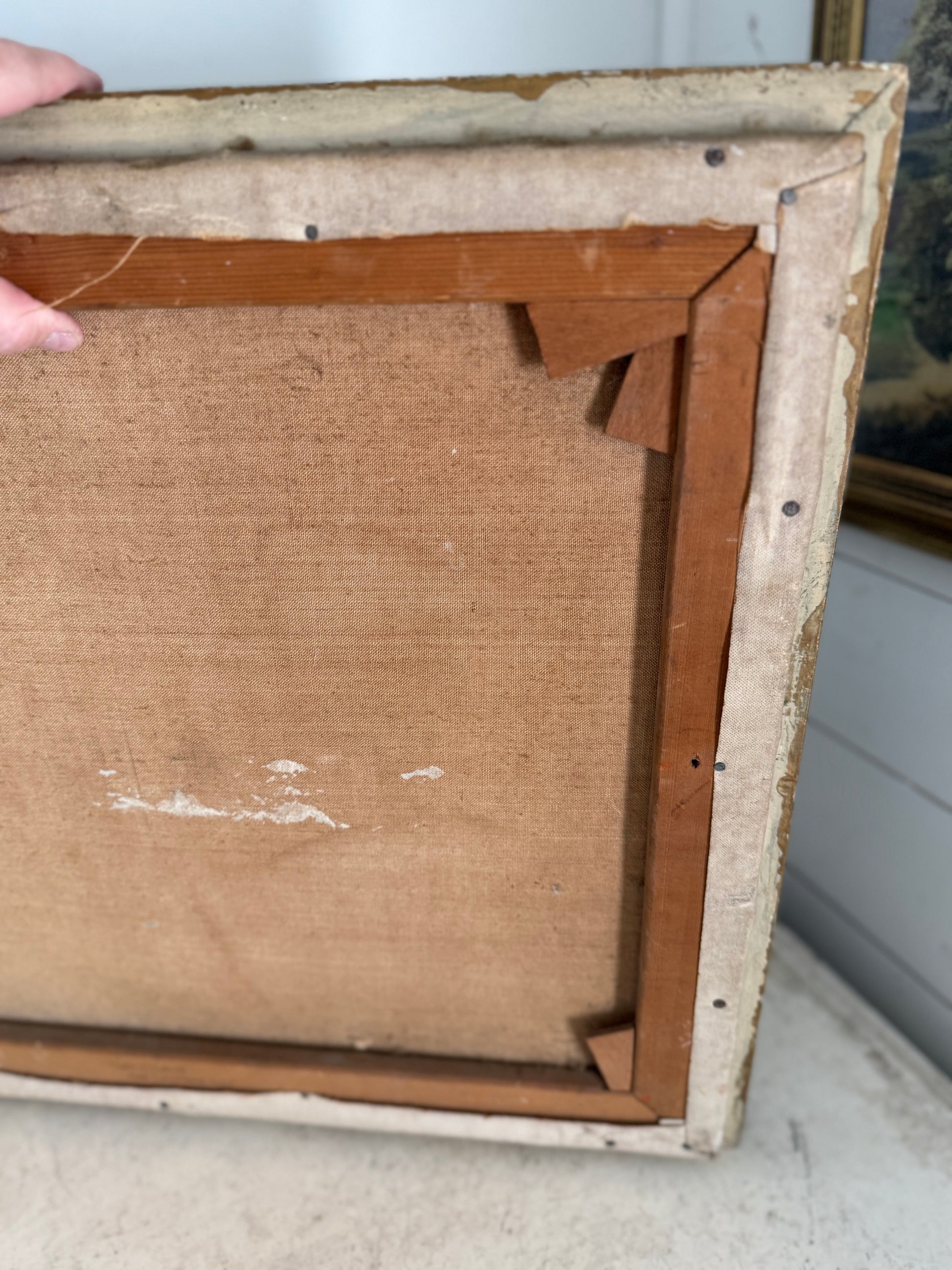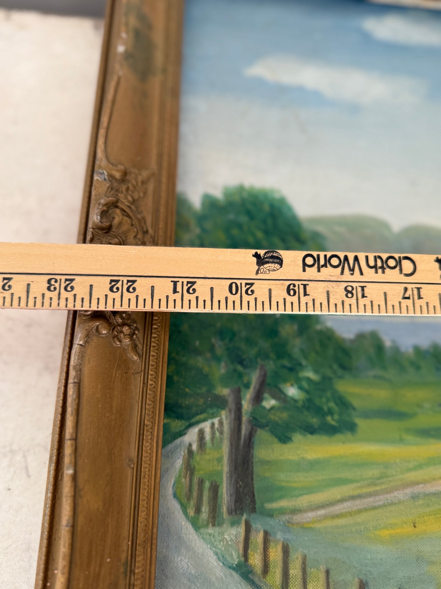Original English Cottage & Lake Antique Art with Frame - as is see damage as shown