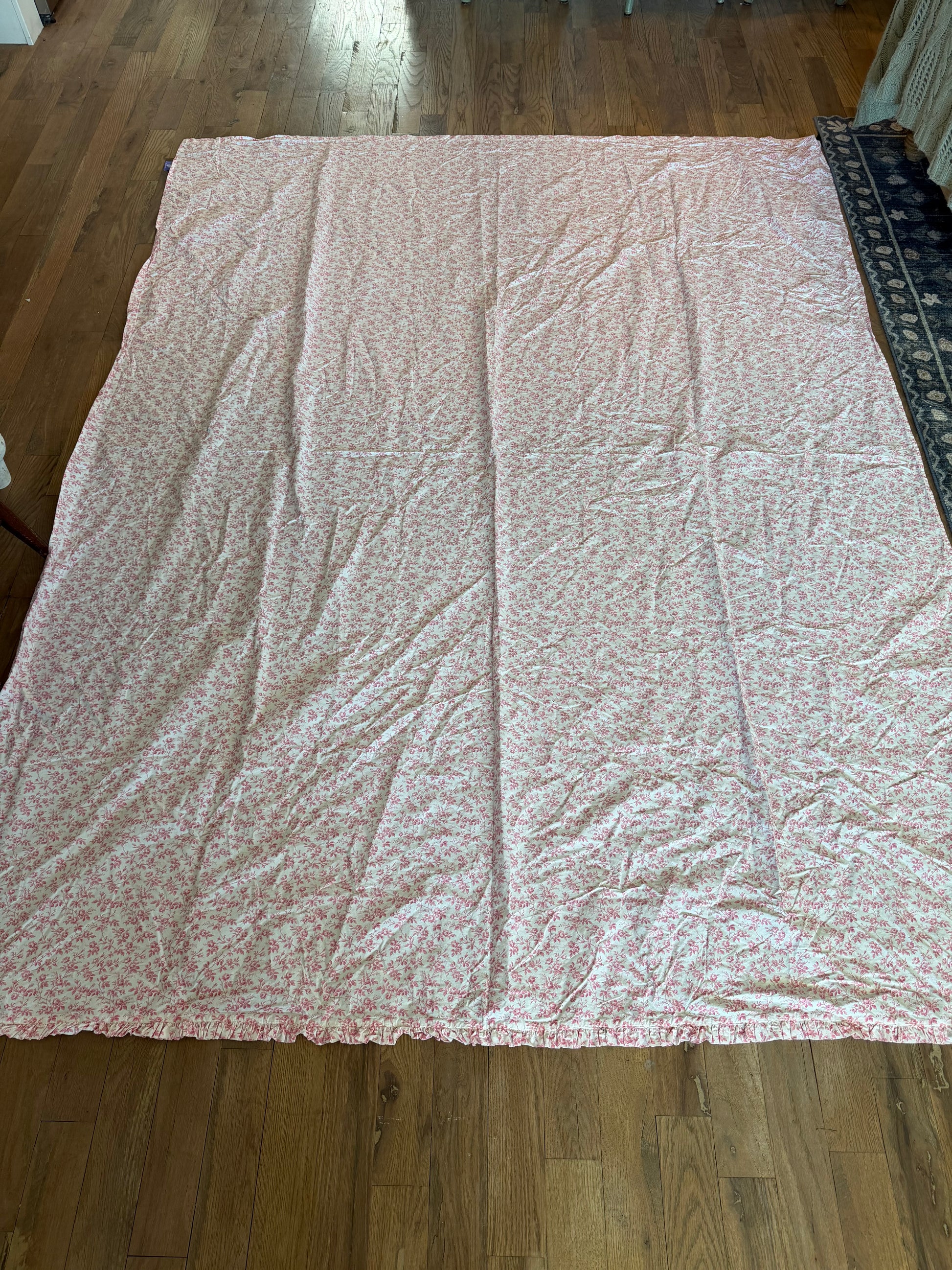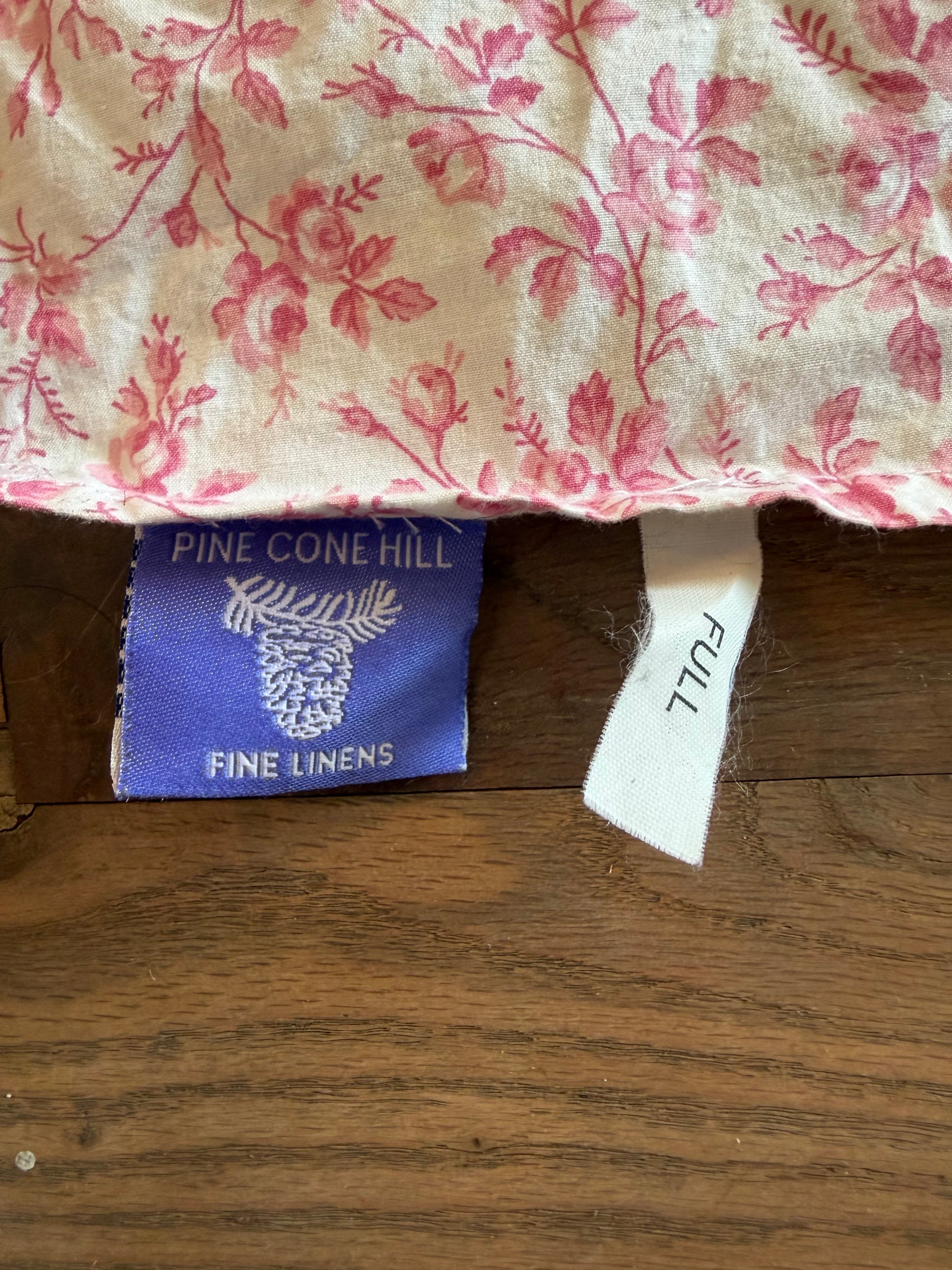 Pink Pine Cone Hill flower Toile Flat Sheet with ruffles on edge - Full Size