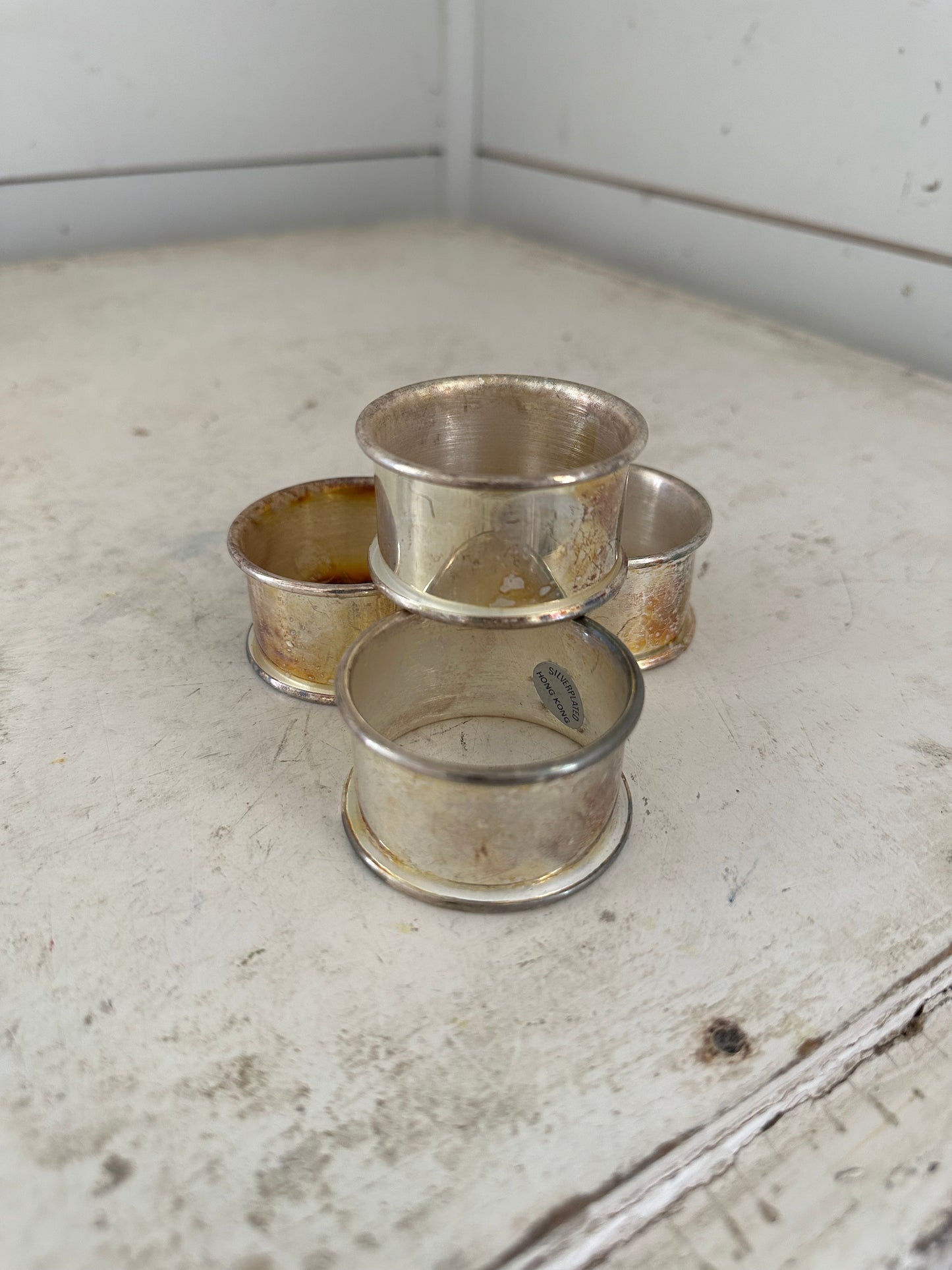 Set of 4 Tarnished Silver Napkin Rings