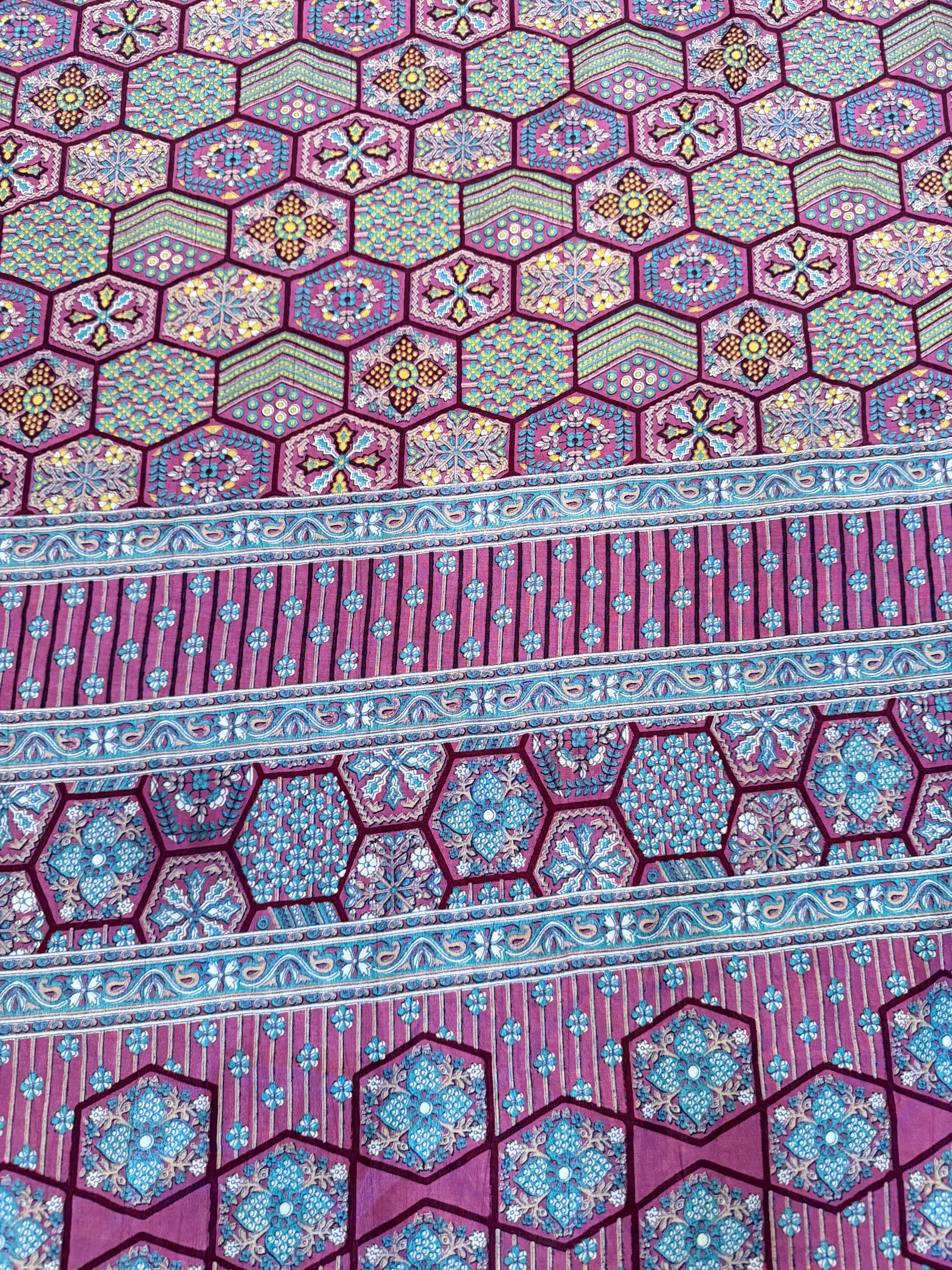 Silk Scarf with intricate geometric block-printed patterns