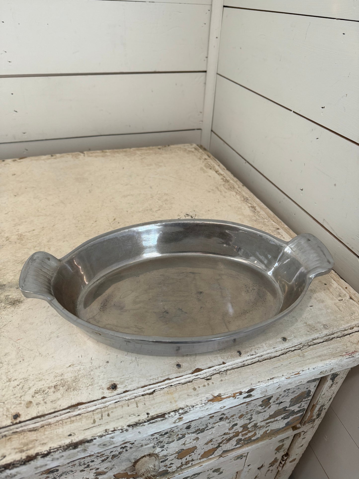 Vintage Pewter MEXICO Oval Serving Platter Tray W/Handle 11 3/4”