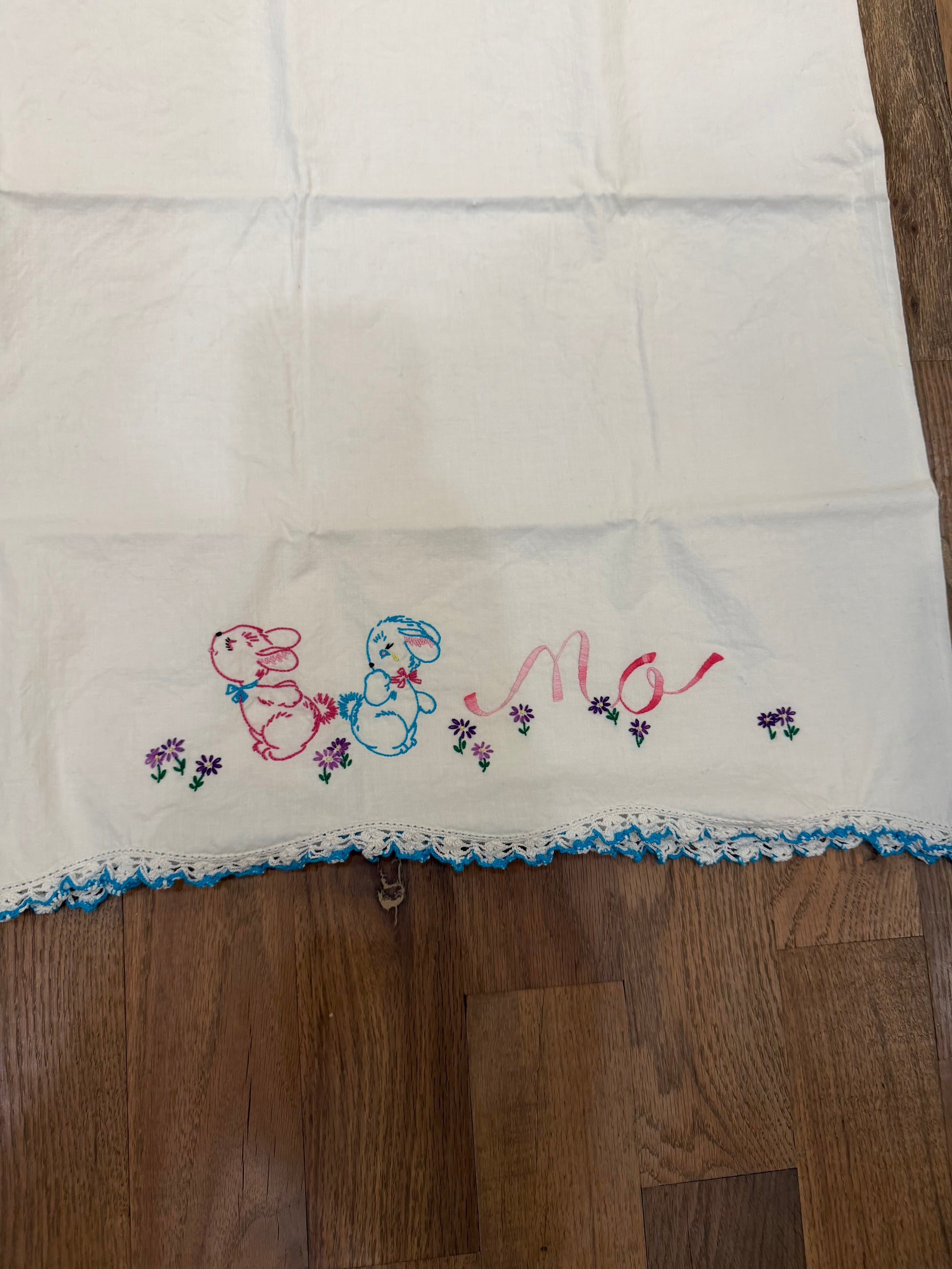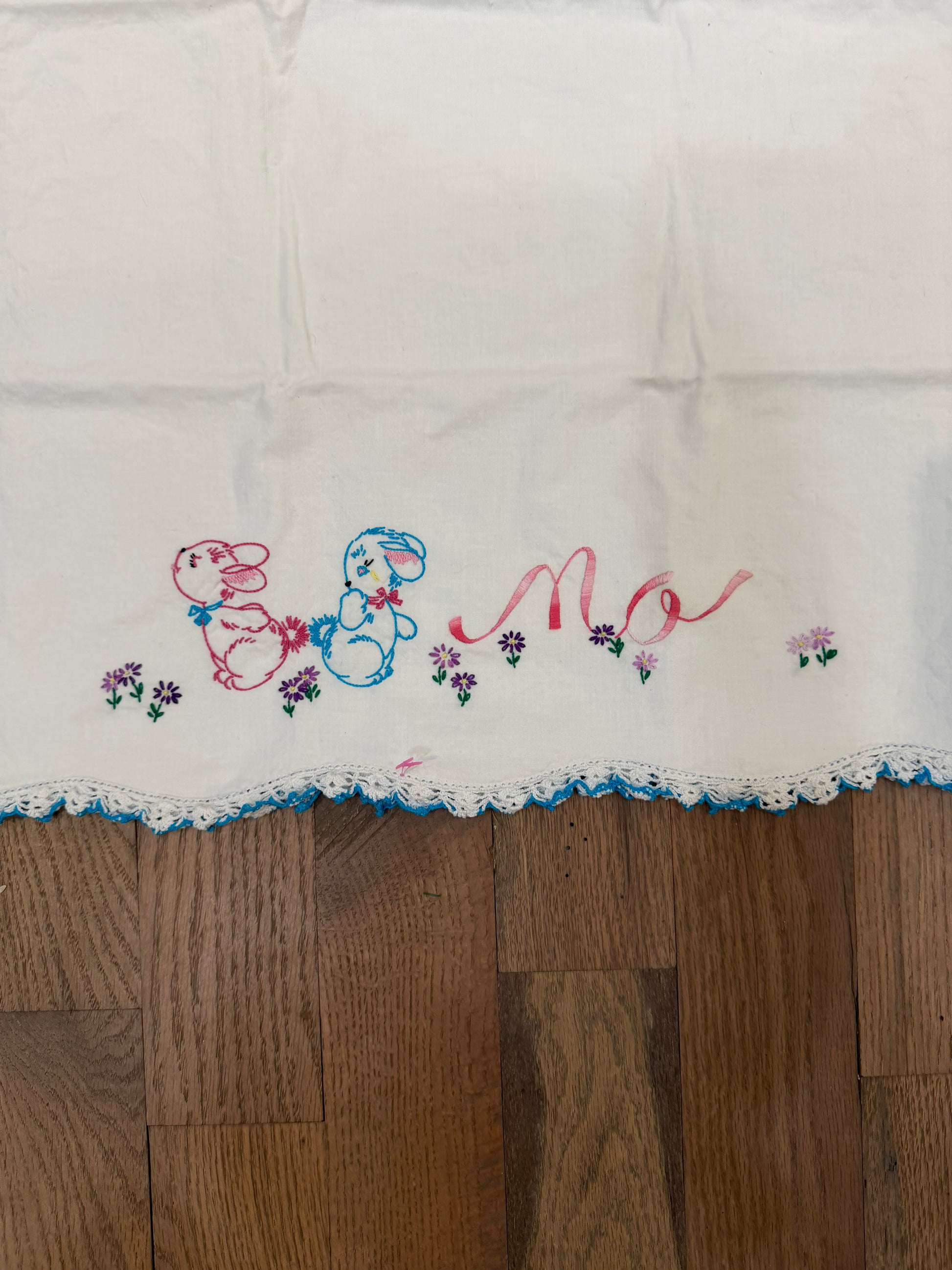Set of Standard size embroidered pillowcases with bunnies
