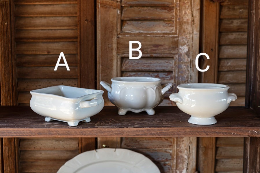 Collected tureens are food safe and look great in groups, useful for serving as well as flower arranging.