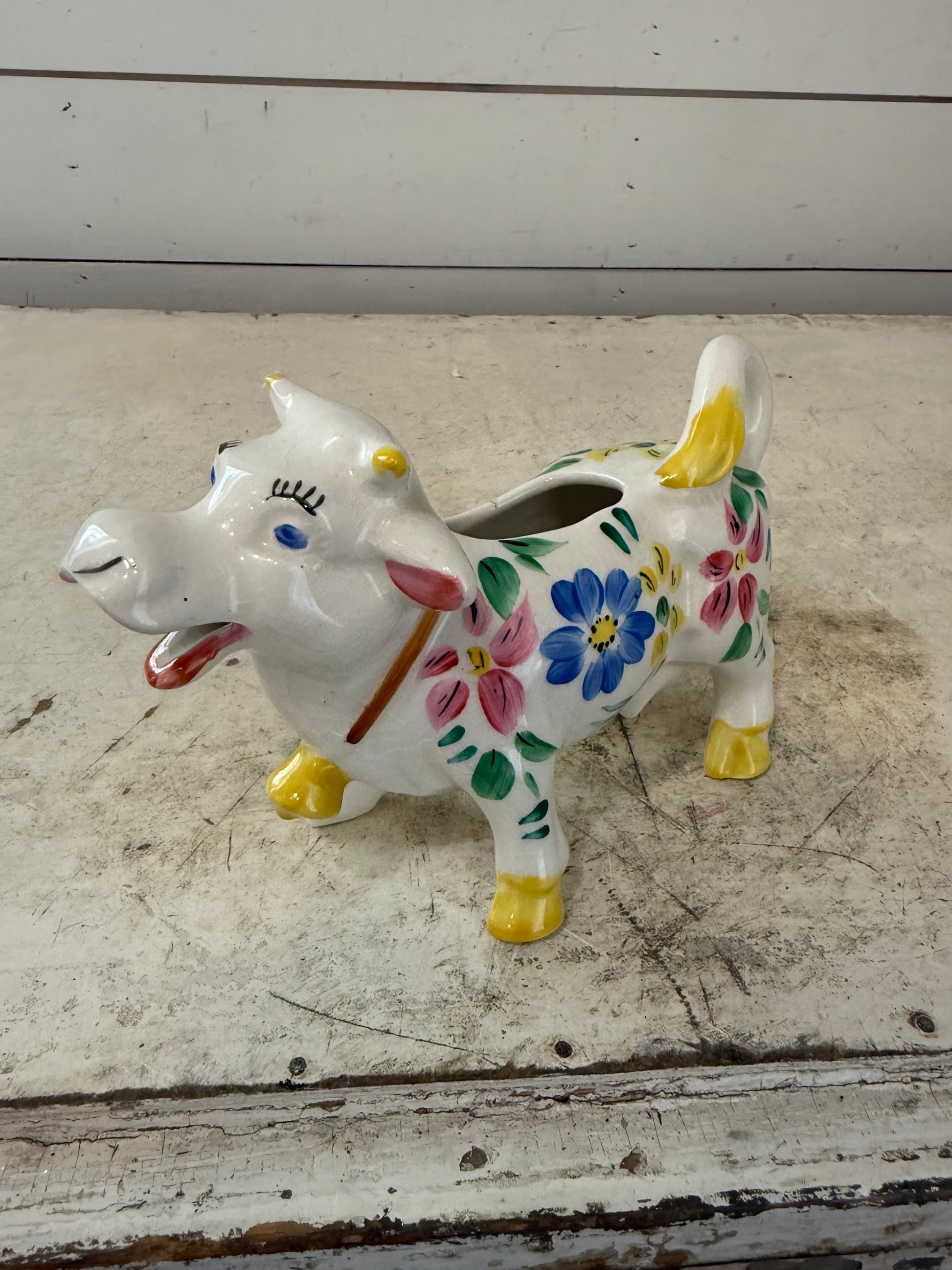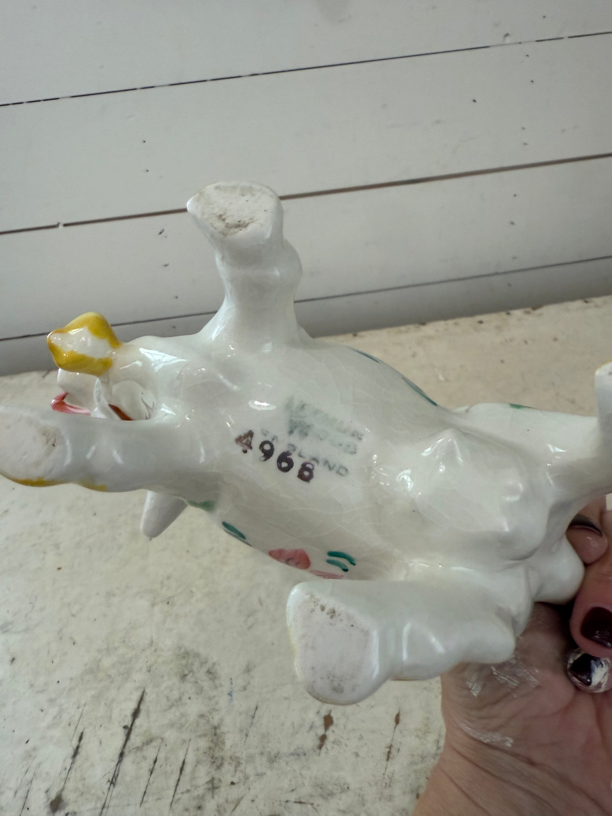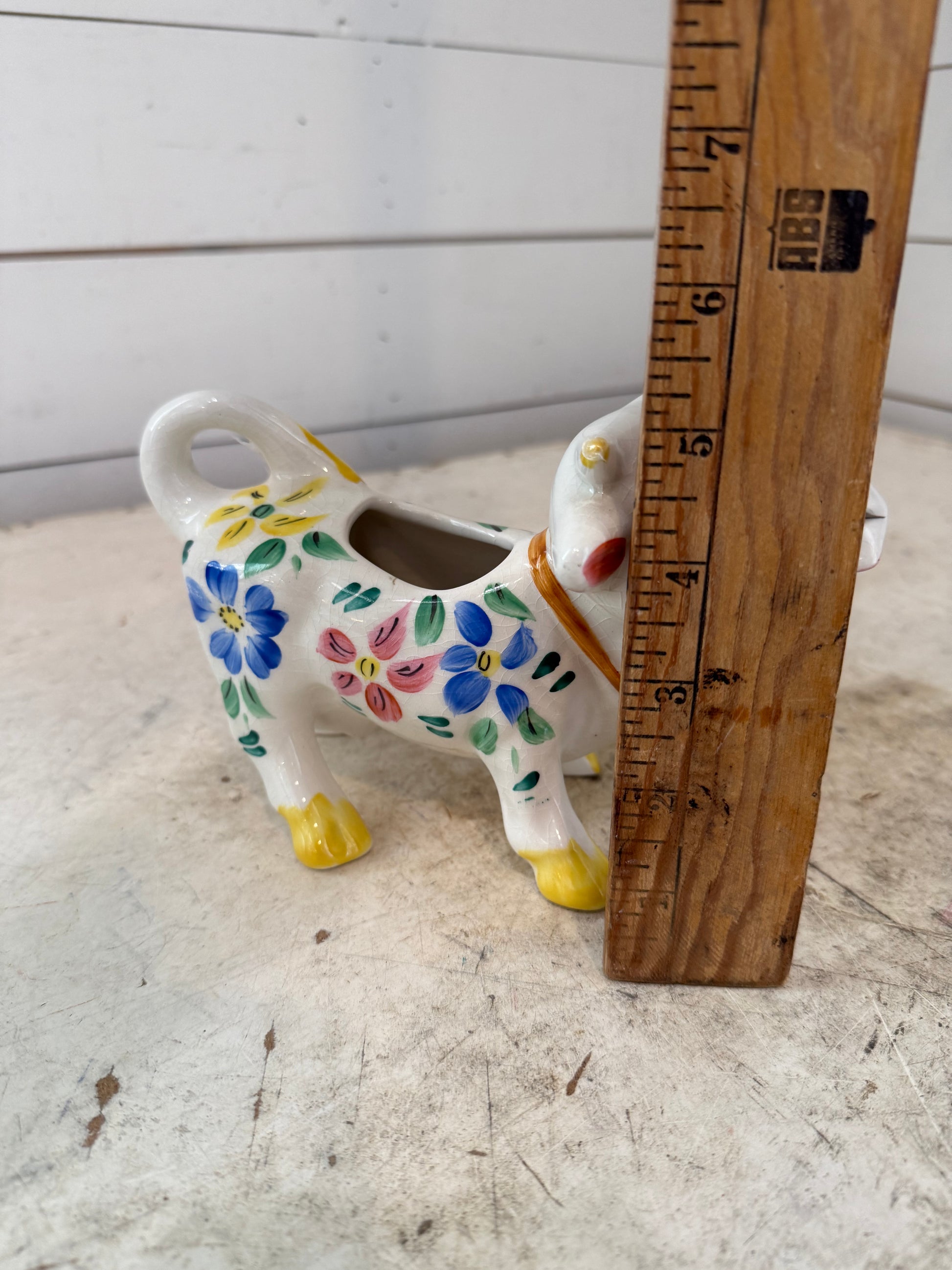 VINTAGE ARTHUR WOODS Ceramic Creamer White with Hand Painted Floral Design
