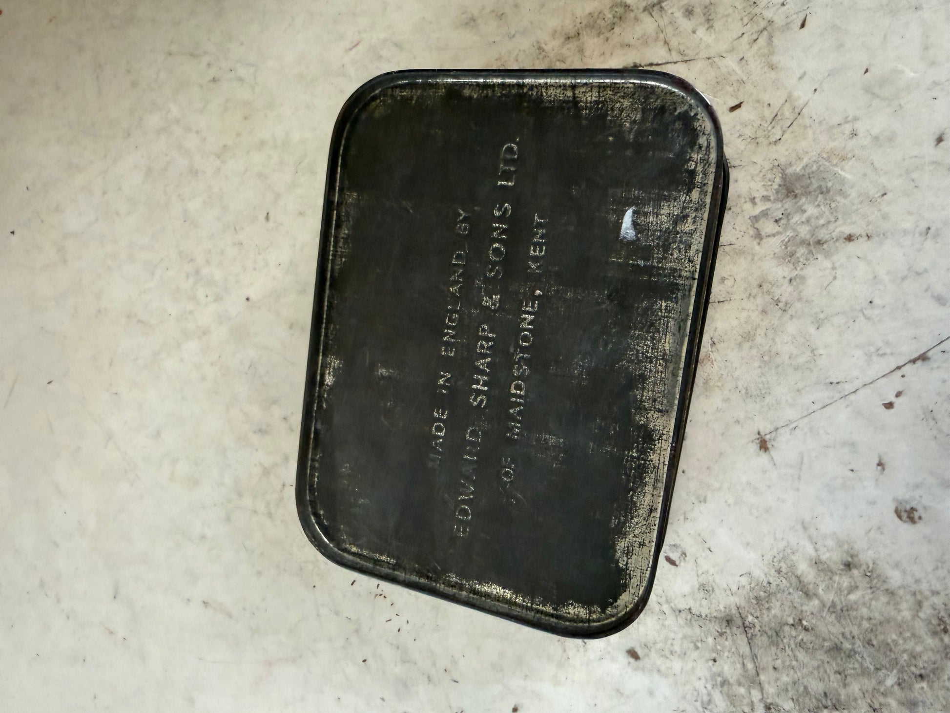 Vintage Blue Bird Toffee Tin Box Empty England 1950s Coastal Harbor Scene Advert