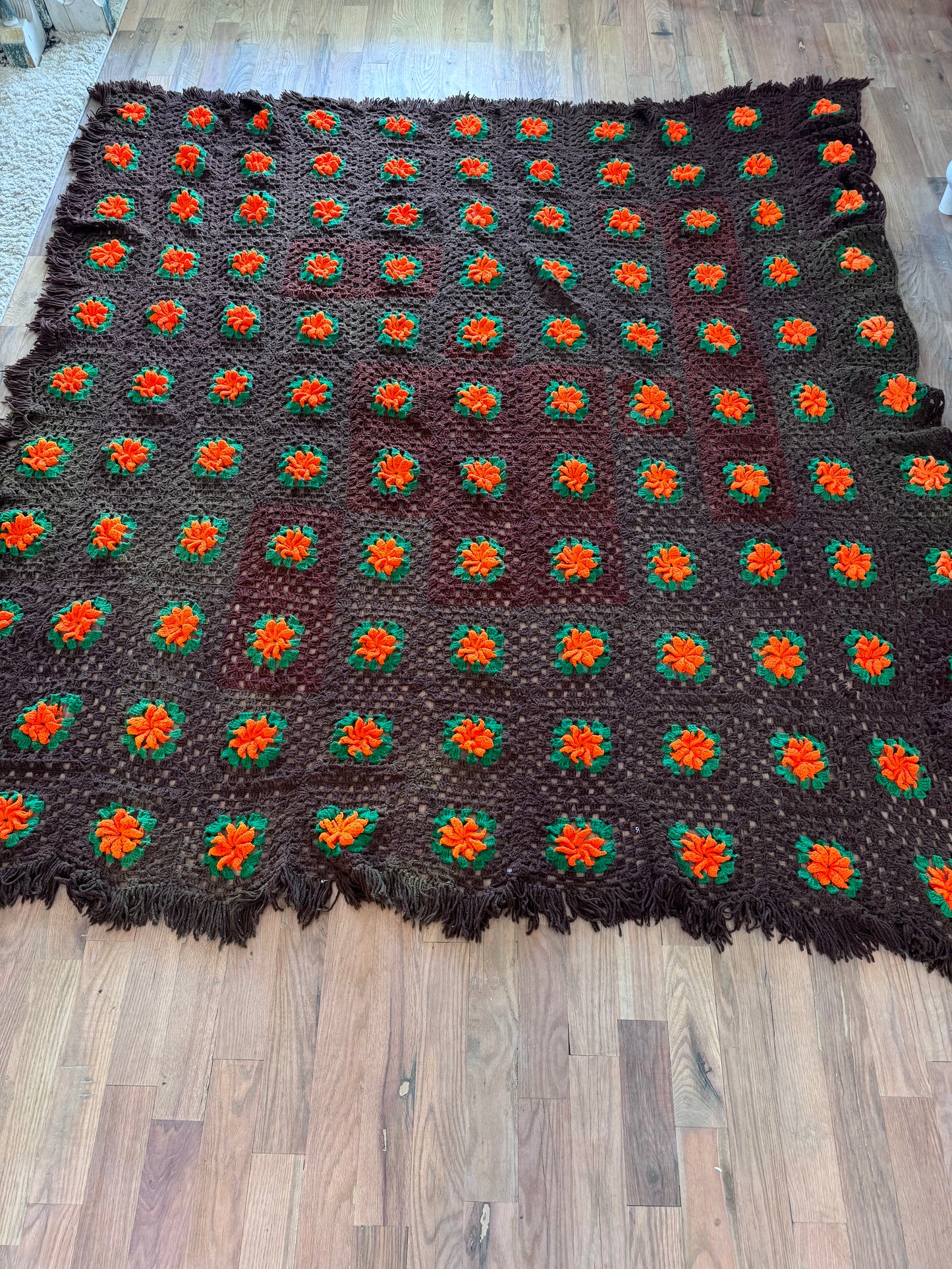 Vintage brown Afghan with raised Poppy Design - Queen
