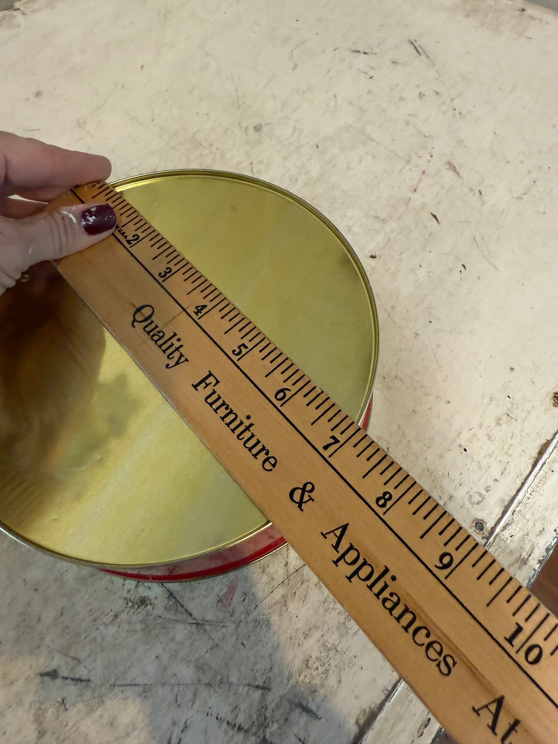 Vintage Jewel Tea Skaters Round Cookie Tin Jewel T Christmas Tin Pine Tree Barn