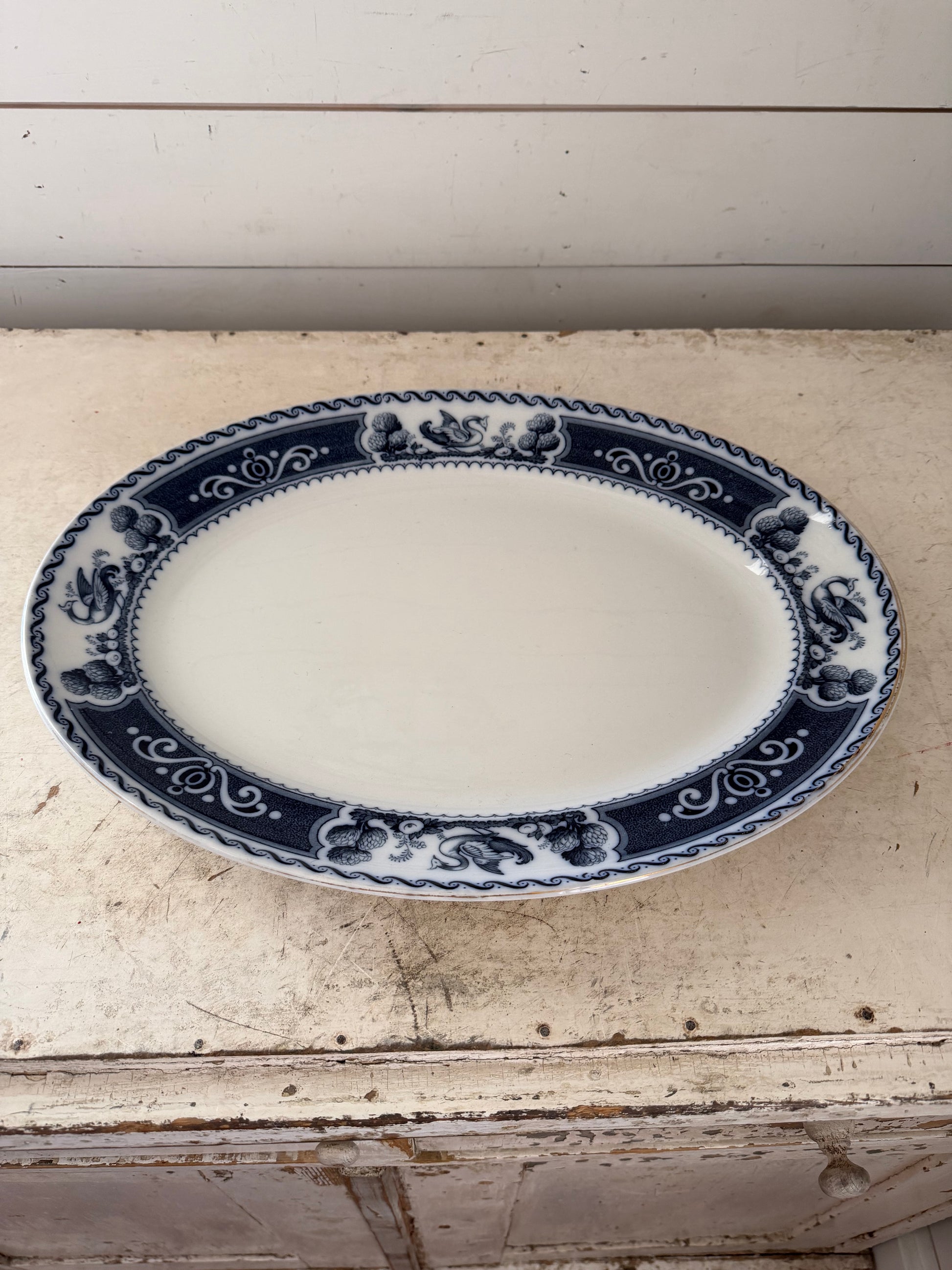 Antique Losol Ware 18” wide oval platter Flow Blue