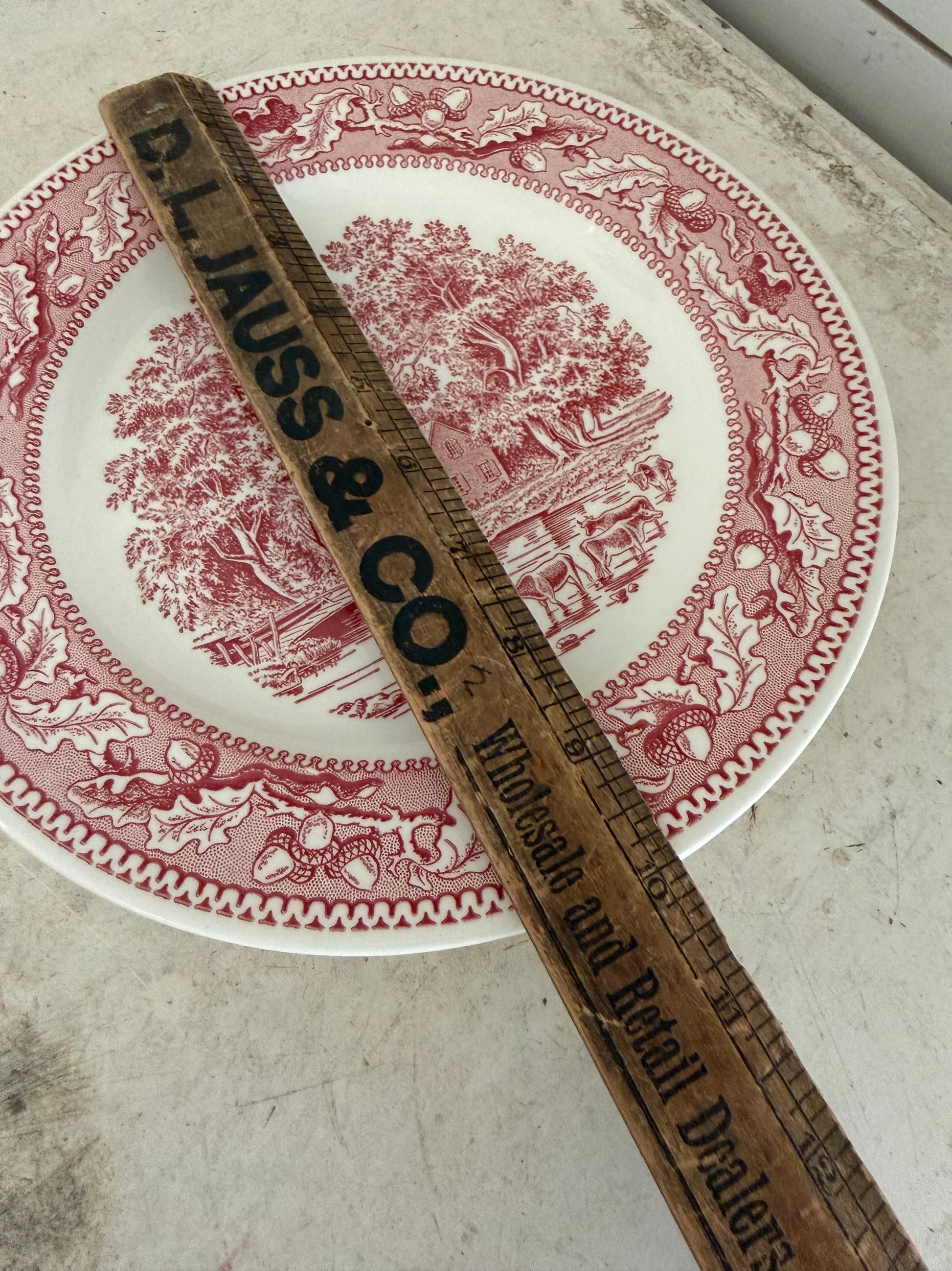 Vintage Royal Ironstone Memory Lane Dinner Plate 10” Red Transferware Country - as is see Chip sold individually